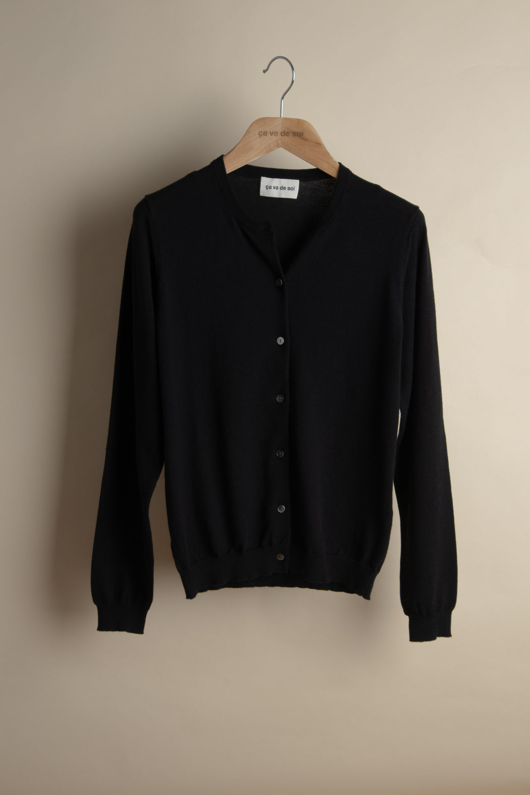 Its ultra-fine jersey knitting, in 18 gauge, is a true technological prowess: thanks to the ultra-fine needles and the automatic machine used, it appears finer than the usual knitting of gauge 12 or 14, while maintaining a beautiful flexibility and uniformity. With high-waisted trousers or a dress, the game is played with unbuttoning, which will offer it the sought-after ultra-classic and retro charm. True to the material in which it is knitted, SALOUM symbolizes versatility.