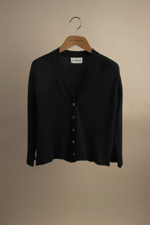 When you think about it, the cardigan is a sewn blazer redesigned and transformed in a knitted version. And this is exactly what ça va de soi does best: reinterprets a classic, makes it less rigid, more flexible and softer. With or without a collard, short, or long sleeves, zipped, belted, buttoned, longer or shorter, black, ivory or azure-blue, the cardigan is a must- in all its forms.