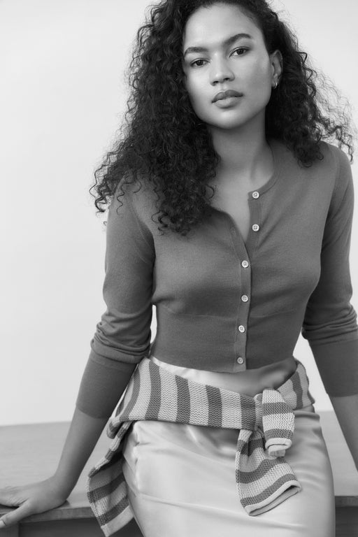 When you think about it, the cardigan is a sewn blazer redesigned and transformed in a knitted version. And this is exactly what ça va de soi does best: reinterprets a classic, makes it less rigid, more flexible and softer. With or without a collard, short, or long sleeves, zipped, belted, buttoned, longer or shorter, black, ivory or azure-blue, the cardigan is a must- in all its forms.