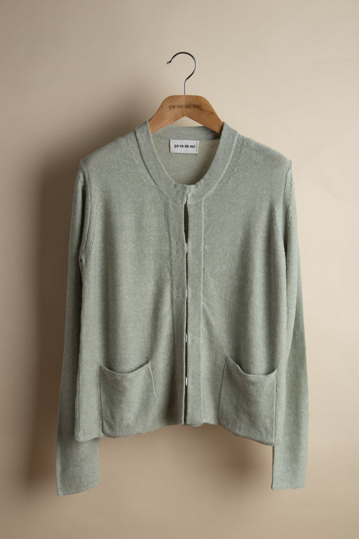 When you think about it, the cardigan is a sewn blazer redesigned and transformed in a knitted version. And this is exactly what ça va de soi does best: reinterprets a classic, makes it less rigid, more flexible and softer. With or without a collard, short, or long sleeves, zipped, belted, buttoned, longer or shorter, black, ivory or azure-blue, the cardigan is a must- in all its forms.