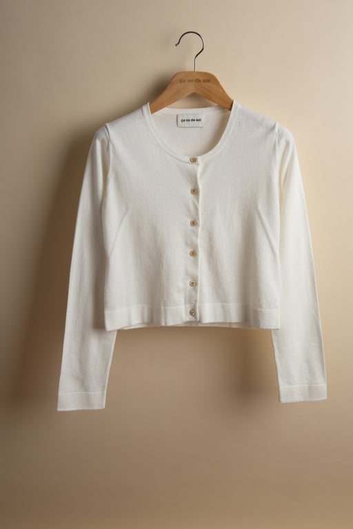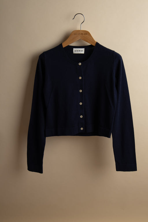 When you think about it, the cardigan is a sewn blazer redesigned and transformed in a knitted version. And this is exactly what ça va de soi does best: reinterprets a classic, makes it less rigid, more flexible and softer. With or without a collard, short, or long sleeves, zipped, belted, buttoned, longer or shorter, black, ivory or azure-blue, the cardigan is a must- in all its forms.