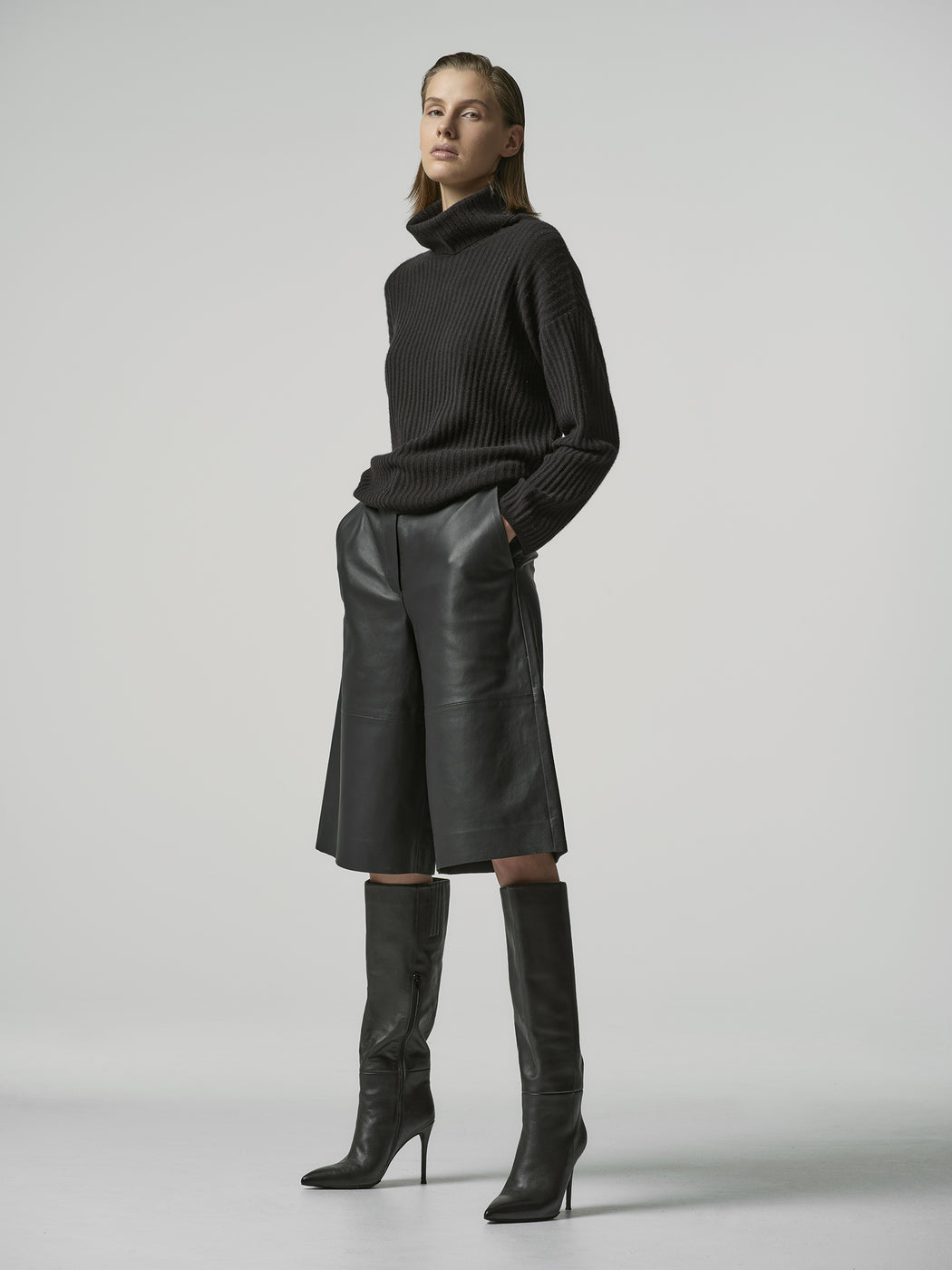 This ribbed drop-shoulder turtleneck is cropped, loose and enveloping while offering style freedom. Sutra shall bring a modern touch to your wardrobe.