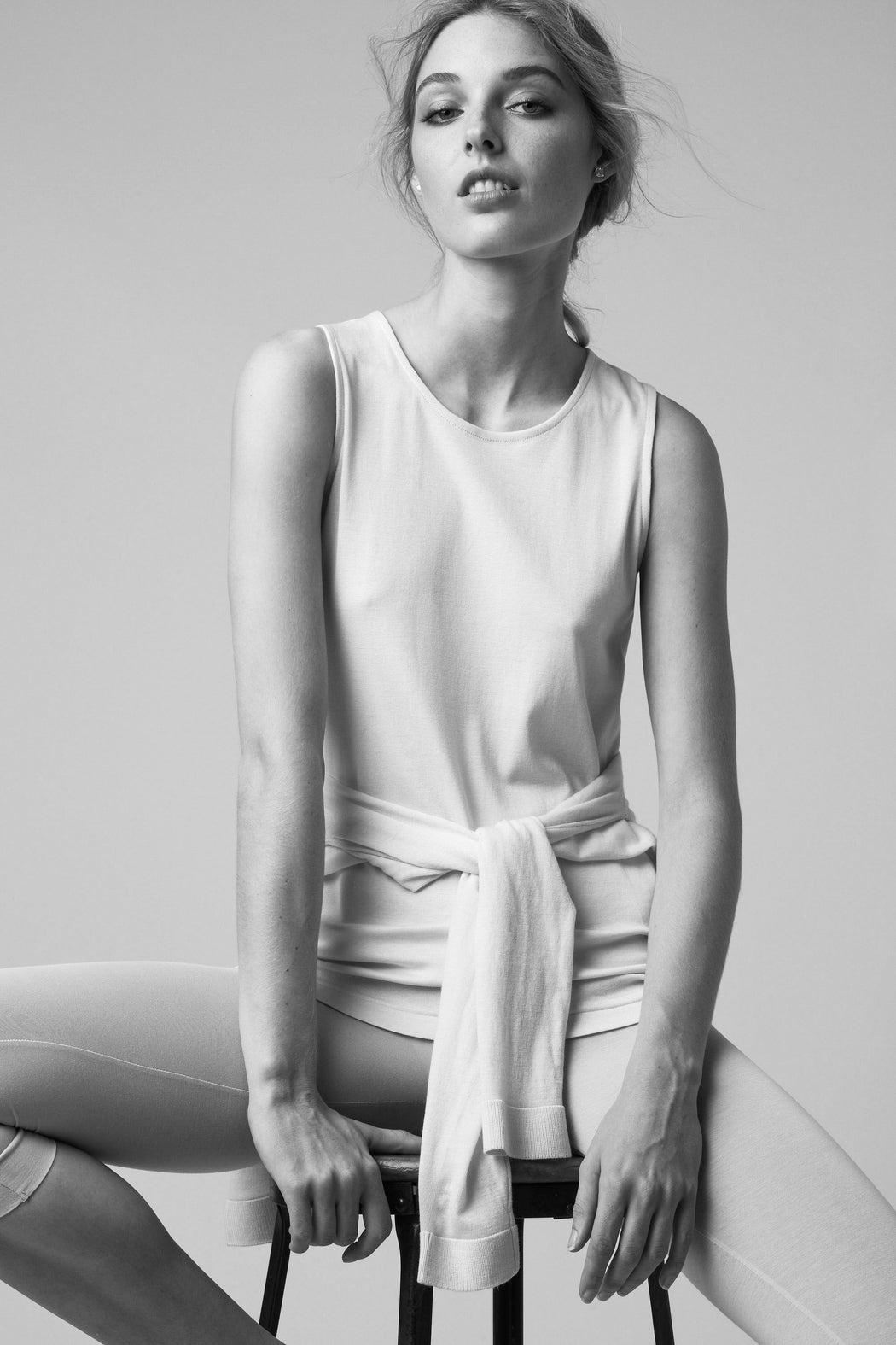 With its flattering trapezoid form and the soft texture of its micro-ribs, this tank in Karnak-Menoufi pure Egyptian cotton offers the versatility of being worn alone or as an under-layer. Proposed by the model Rosa is the comfort of an undergarment combined with the refinement of a confidently urban "couture" approach. Its structure, as understated as it is refined, bears no other technique than the fine French seams that cinch its openings. The collection of this essential comes in three light shades and a black Licorice.