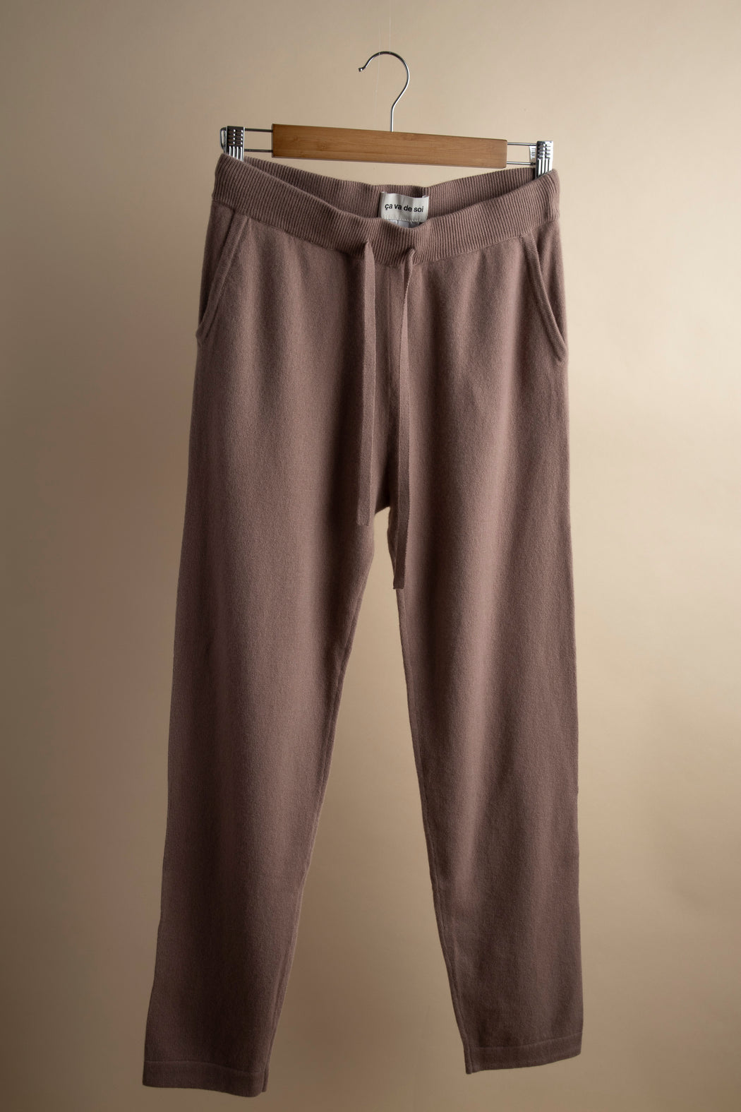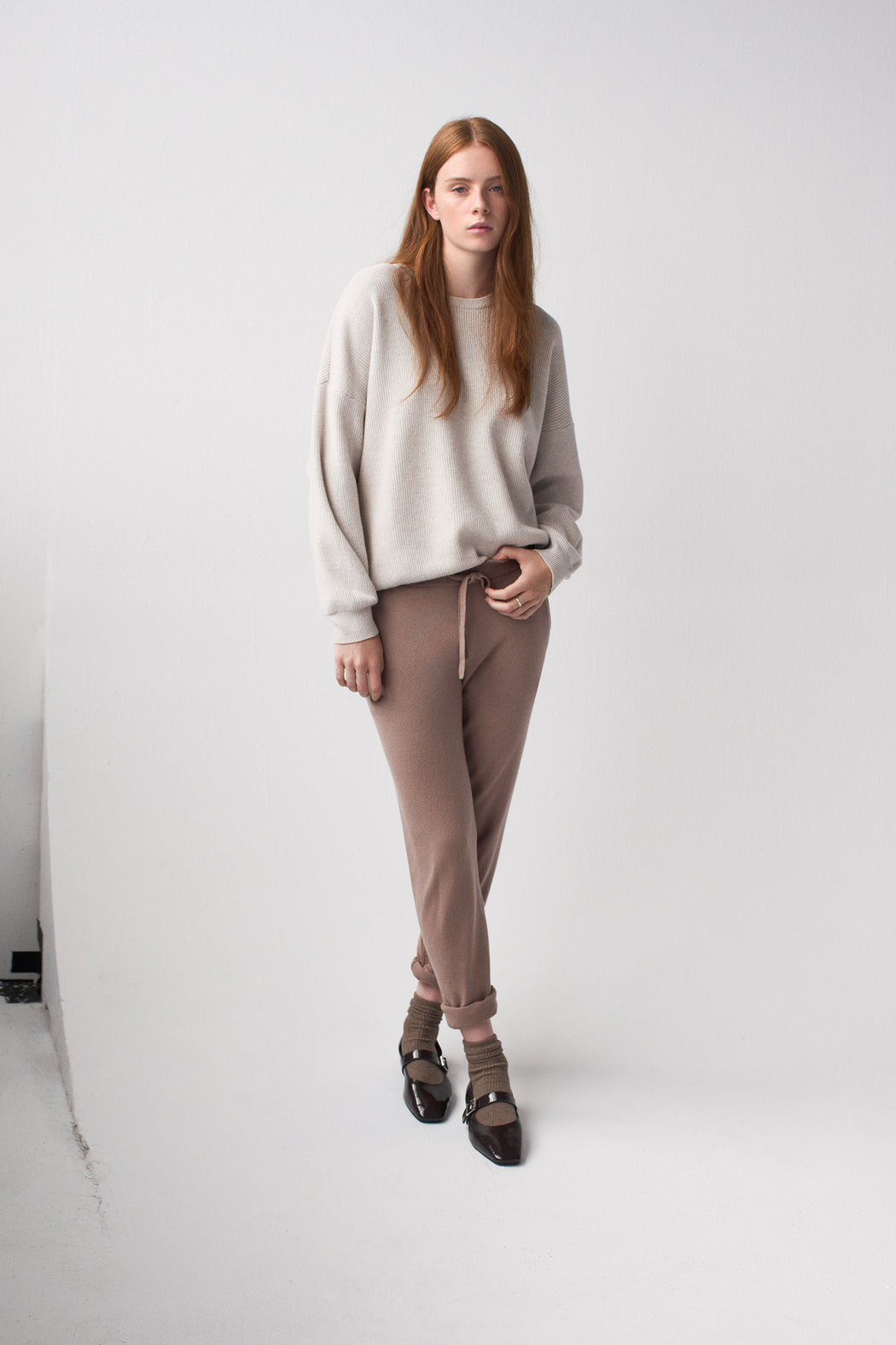 A wardrobe essential, now in a feminine knitwear version. Undeniably comfortable yet stylish. What could be cozier than being wrapped in knit from head to toe? With discreet invisible pockets for a refined look, an elastic waistband, and a knit drawstring for a sporty touch.