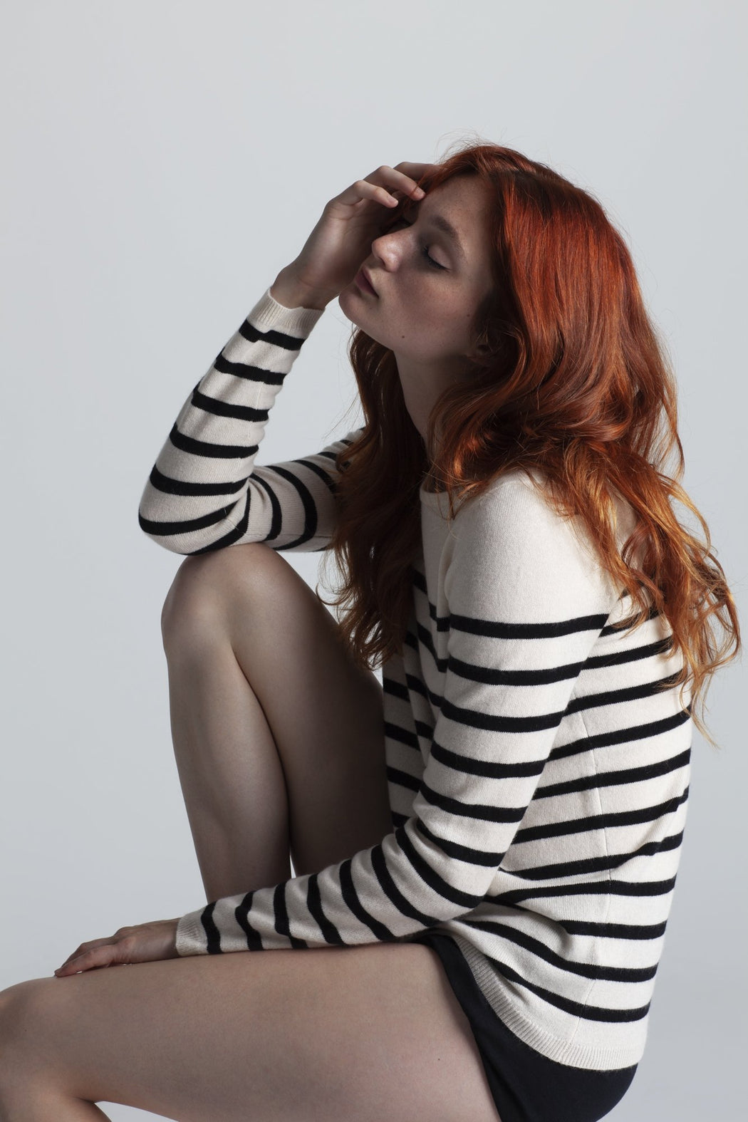 This warm stripe crew neck sweater is made of Alashan cashmere. A name that conjures up pure elegance and luxury. ça va de soi makes cashmere fully feminine, to wrap your skin in exquisite softness.
