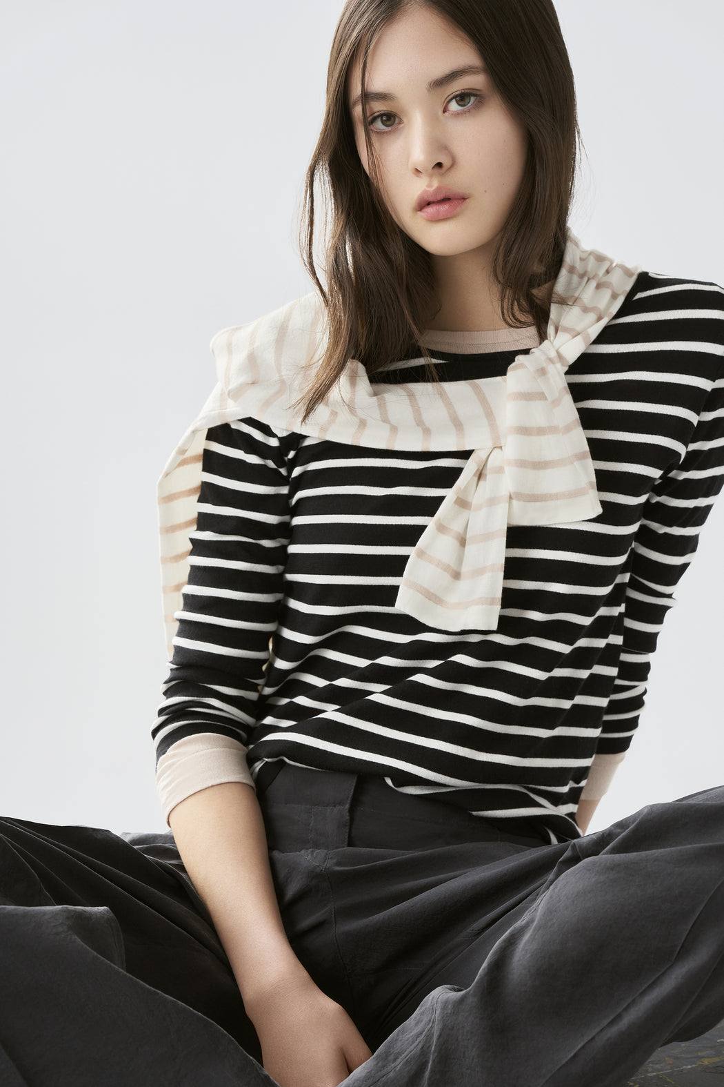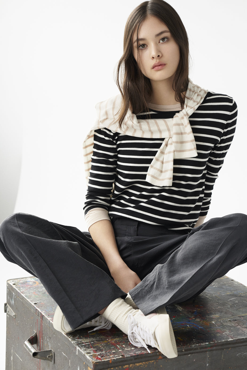 It's made of COM4-ZERO™ Egyptian cotton, an Italian yarn that combines the age-old beauty of Egyptian cottons with state-of-the-art spinning technology, virtually eliminating the fuzz in the yarn that might create pilling over time. Slightly twisted, this yarn advantageously retains the natural elasticity of the fibre, which gives more movement to the garments it generates. Smoother, it gains in solidity to better resist time. More stable, it retains its colors indefinitely.