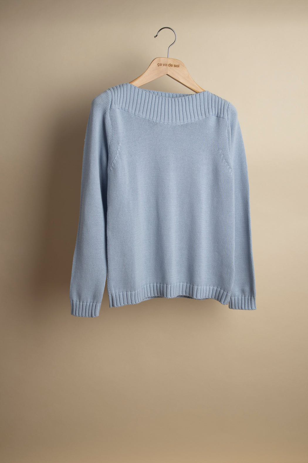 For a vintage look, a heavy gauge boat neck sweater/ pullover. The 2x2 ribbing on the collar is a major asset: a straight finish that promises a beautiful drape on your shoulders and accentuates the neck. The refined bust darts and the length of the bracelet sleeves add a touch of femininity.