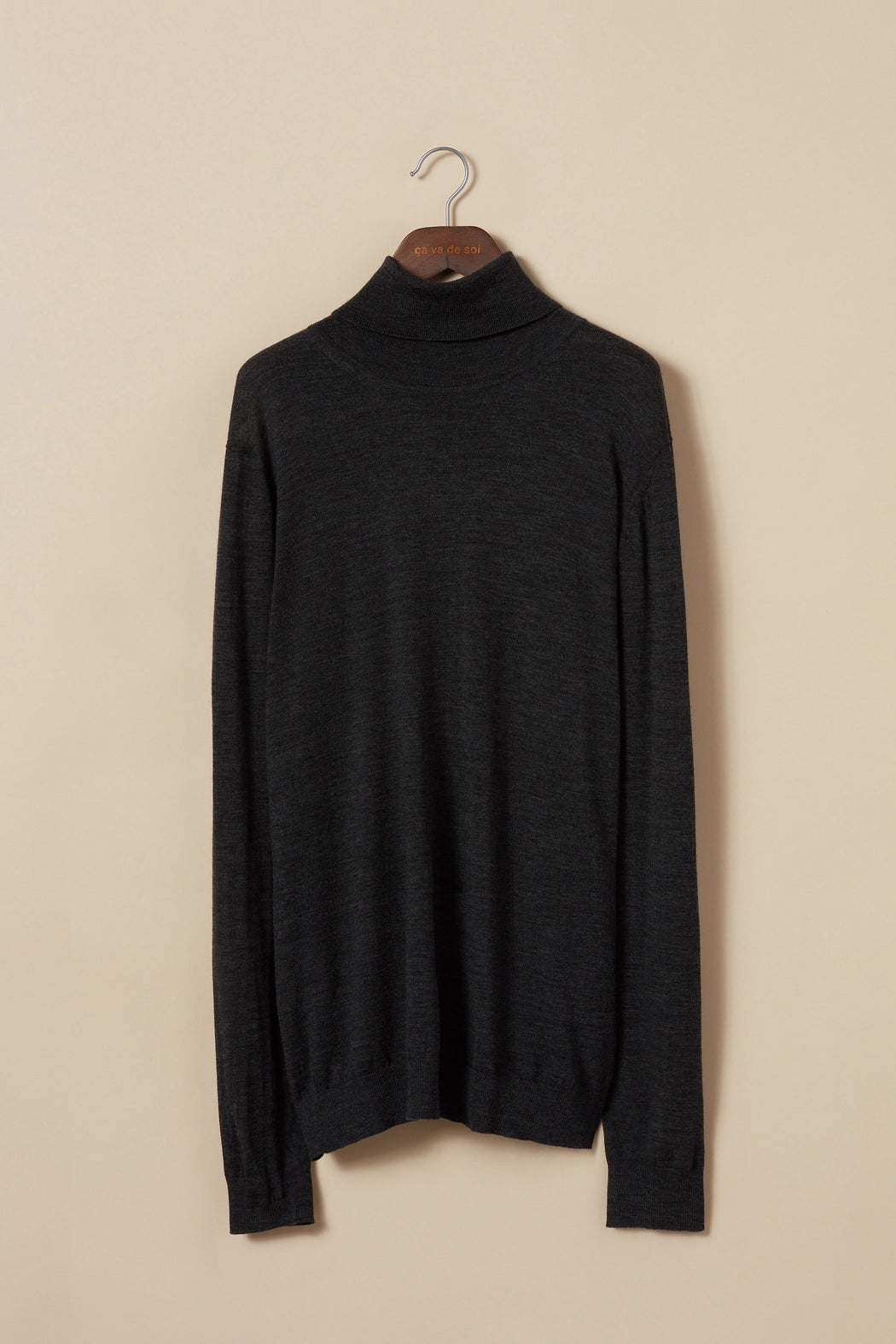 Like the V-neck and the round neck, the turtleneck sweater is a must. Whether it is to replace the shirt under a blaser or to be worn directly on the skin, this property will allow you to go through great temperature shifts in comfort. Perfectly adjusted to the physique, this fit gives optimized comfort and style. The design of our extra-fine merino wool sweater is based on the expertly modernized proportions of a 1960s classic. It is surprisingly light and soft on the skin. Our collection is available in two subtly complex, rich heathered shades - Camel and Anthracite. It also comes in our Absolute black and Sapphire.