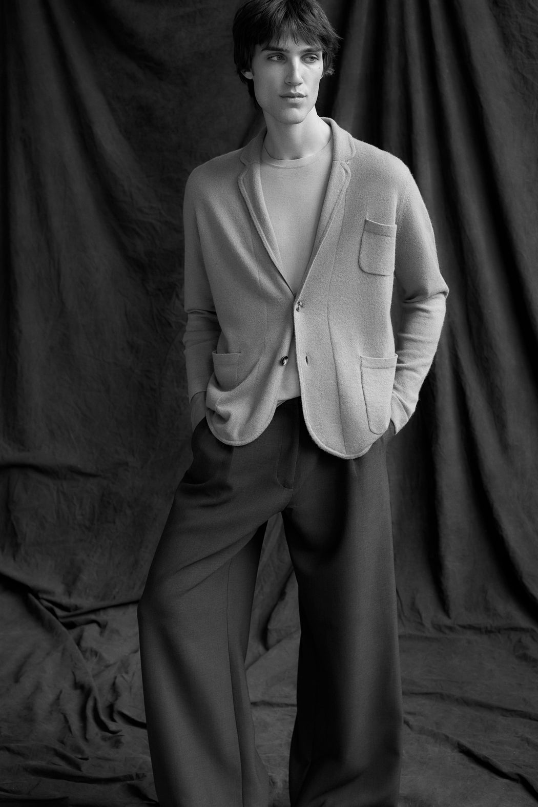 Halfway between an artist’s jacket and a traditional French bleu de travail, this piece carries a distinctly Parisian flair. Practical with its three large patch pockets and a small back vent for ease of movement, it features tubular finishes at the collar and cuffs, while the turtoise shell-effect horn buttons add character and understated elegance. All the comfort of knitwear, with no compromise on style !