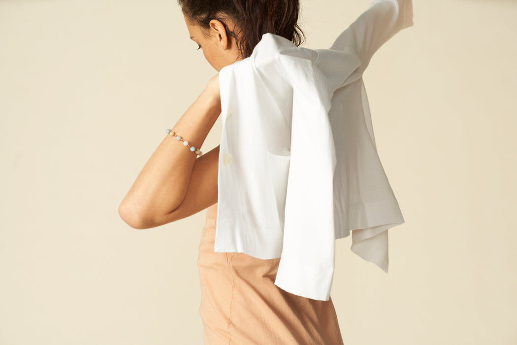 This summer blazer is made of a pure Egyptian cotton - Extra Long Staple - that has the look and feel of woven linen. A summer knit that is fresh, airy and chic, with enough body to create a flowing sophisticated effect. The Crepe Artic® spinning technique will keep you dry in the warmest, most humid summer days and evenings.