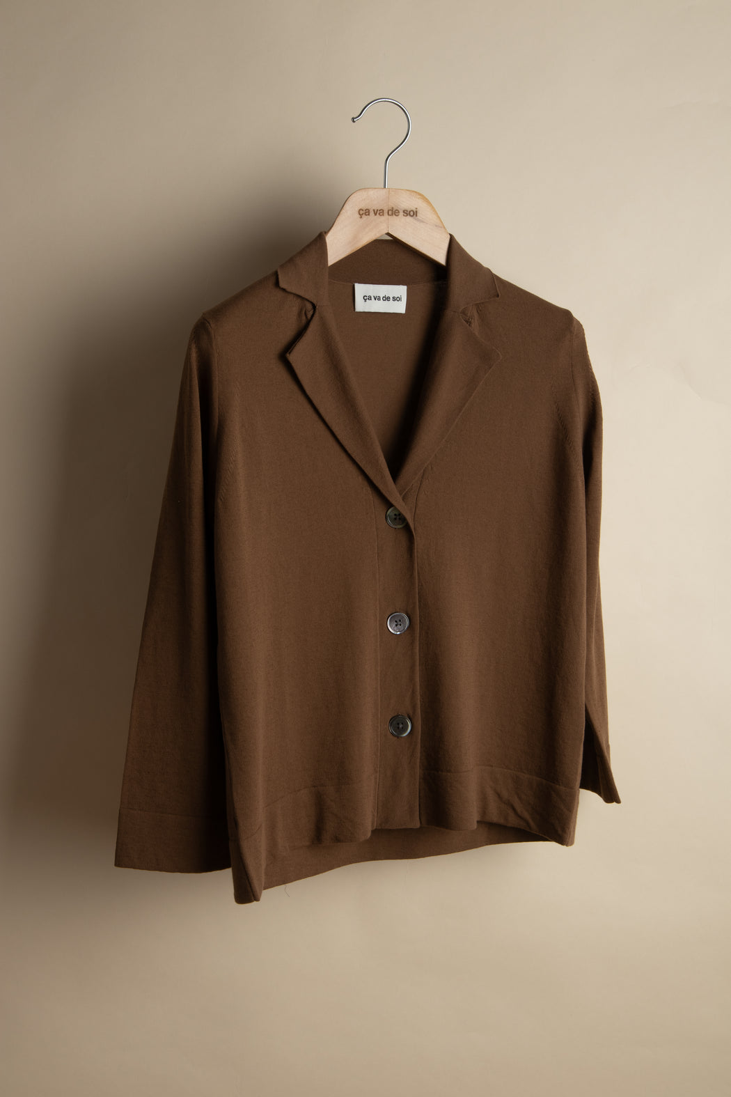 The sartorial effect replayed in knitwear: ça va de soi is proud to have made it one of its specialties. Knitted vests with tailored necklines instantly provide the comfort of bespoke clothing, thanks to the flexibility of the jersey and its needle reductions. The result is elegance and sophistication without compromising comfort. Wear it as a suit or over a dress, and why not over your favorite skirt or pair of pants.