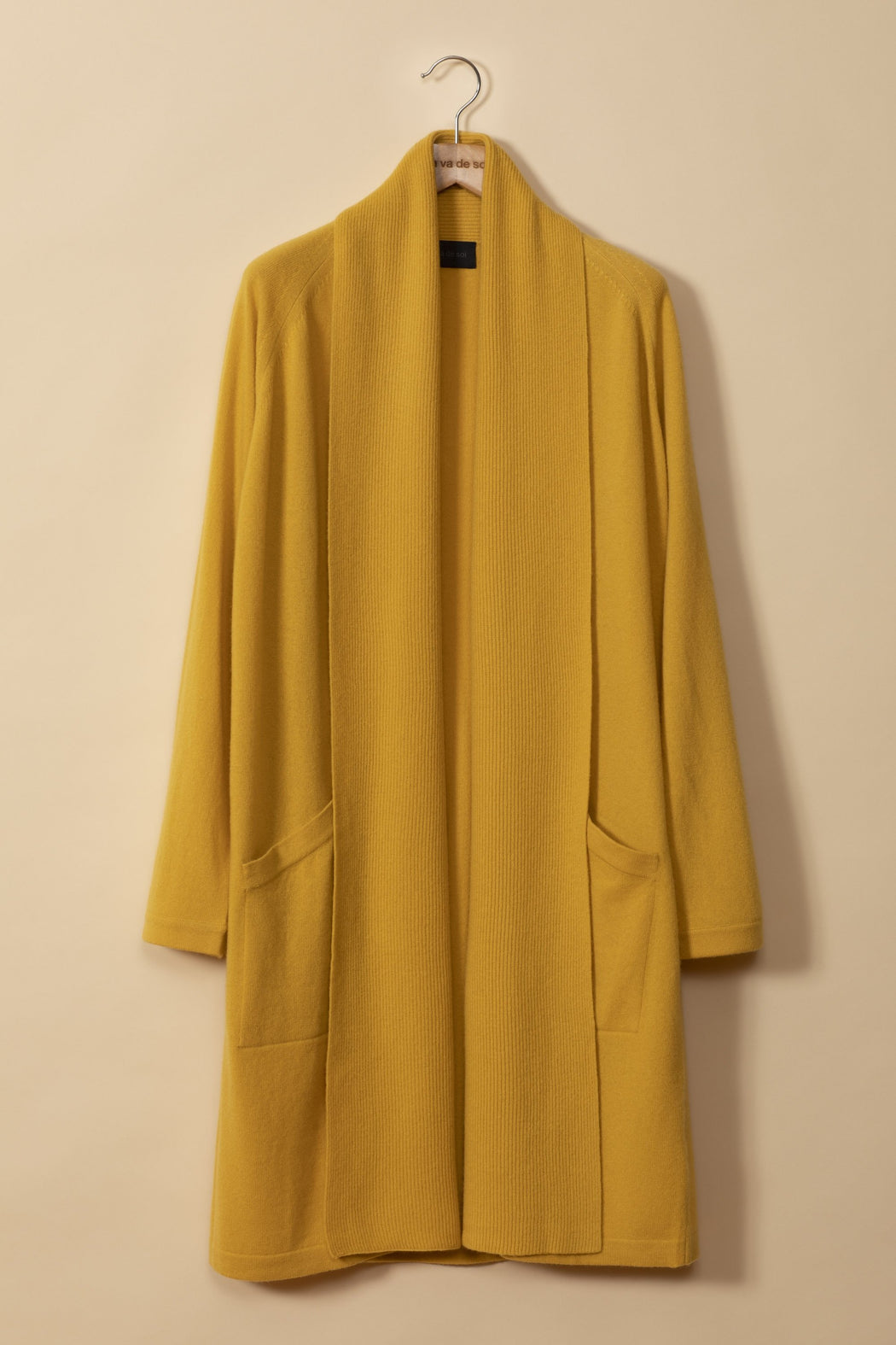 How to define Garance ? It can be a cardigan, a coat a shawl or even a throw - what is certain is that it will warm you up with style. The carding, weight and texture of this cool l allow for wrapping creations in total looks composed of coats, skirts, cardigans and dresses. Made of a blend of 80% Super 100 wool and 20% cashmere for an optimal thermal effect. Its modern coloration brings along a breeze of freshness serving as tonic accents throughout the the season like a bouquet of fresh flowers… Available in oatmeal, black, saffron, and mustard.