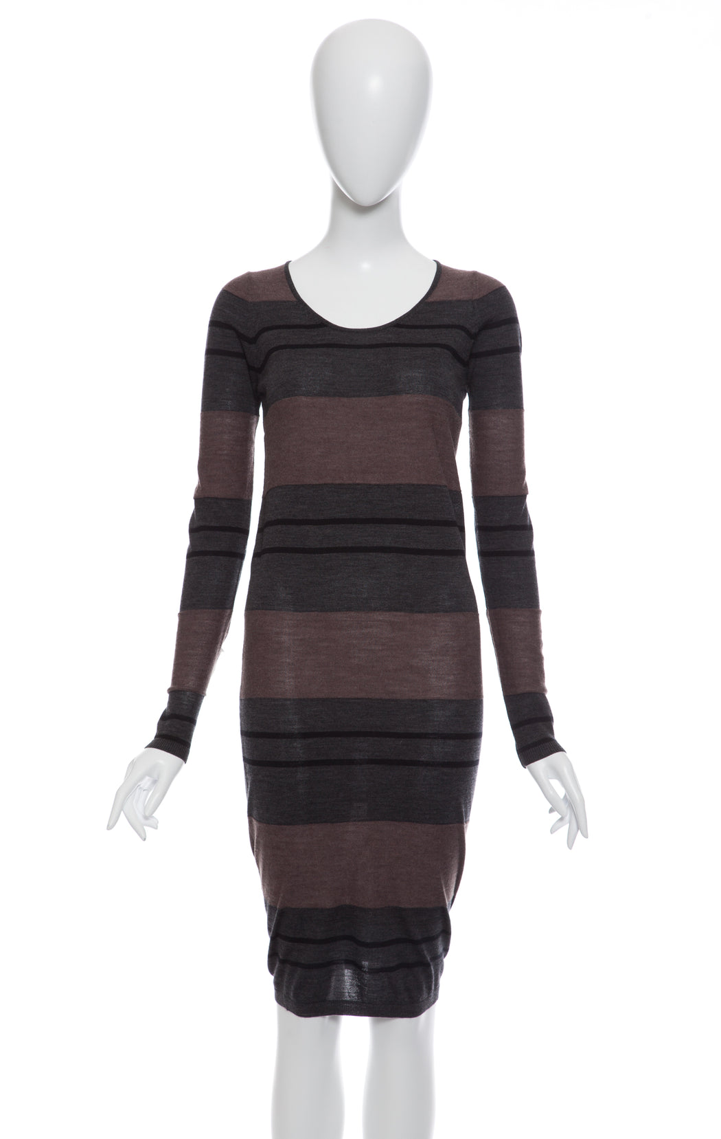 This knee-length sweater-dress is made of pure ZQ® Super-120 merino, an extra-fine wool that is combed and mercerized. ZQ® merino means the sheep is traceable and comes from ethically run farms. Naturally white and luminous, this wool is a favorite among our collections since 2010 due to its durability, and lasting beauty.