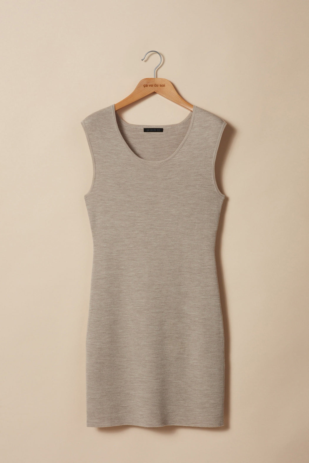 In 1962, Jean Shrimpton, the iconic figure of Swinging London, wore an ultra-simple, short, sleeveless dress, which became etched in time. ça va de soi pays tribute to it with a 100% ZQUE merino interpretation , an extra-fine, luminous, ethical, light and resistant wool. Licorice black dramatically embodies the perfect basic. In one of our three shades - Millet, Ink, Anthracite - it is a great classic that deserves an up-close and personal gaze to better appreciate all the intricate, rich qualities. Its urban chic appeal makes it the perfect go-to, multi-purpose piece. A bag and a glittery jewel are all you need to transition – seamlessly – from daytime to evening.