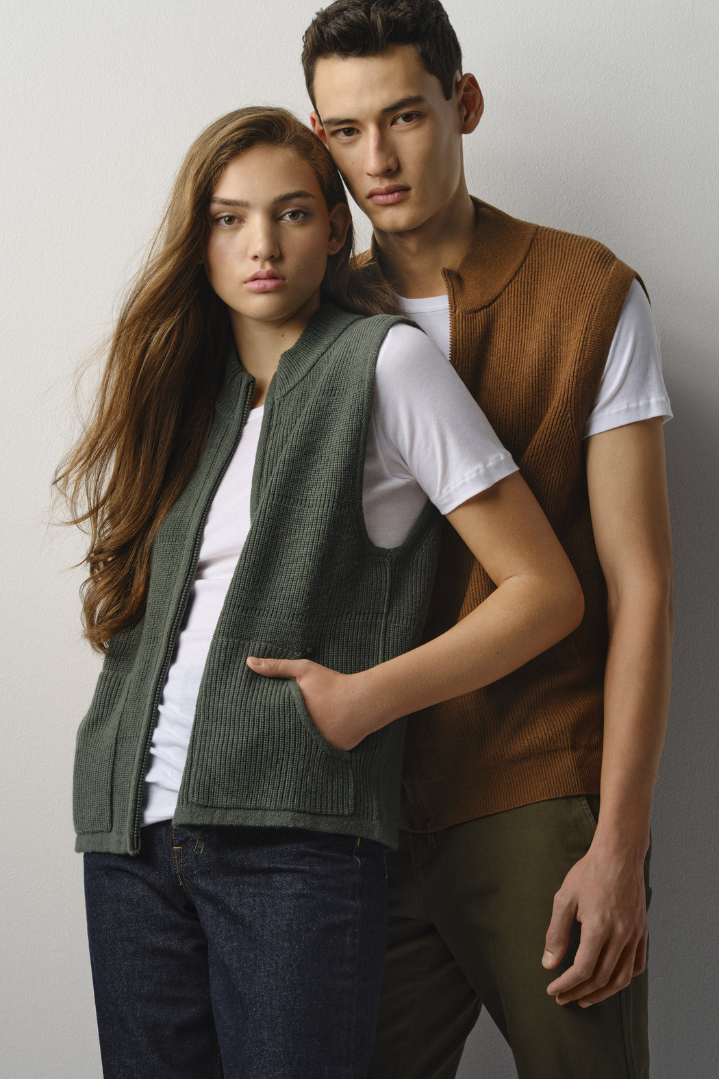 Practical, multi-functional and genderless, this multi-rib, knit zip vest with kangaroo pockets will become your fall-winter essential... For extreme cold, layered under a coat or solo in the fall.