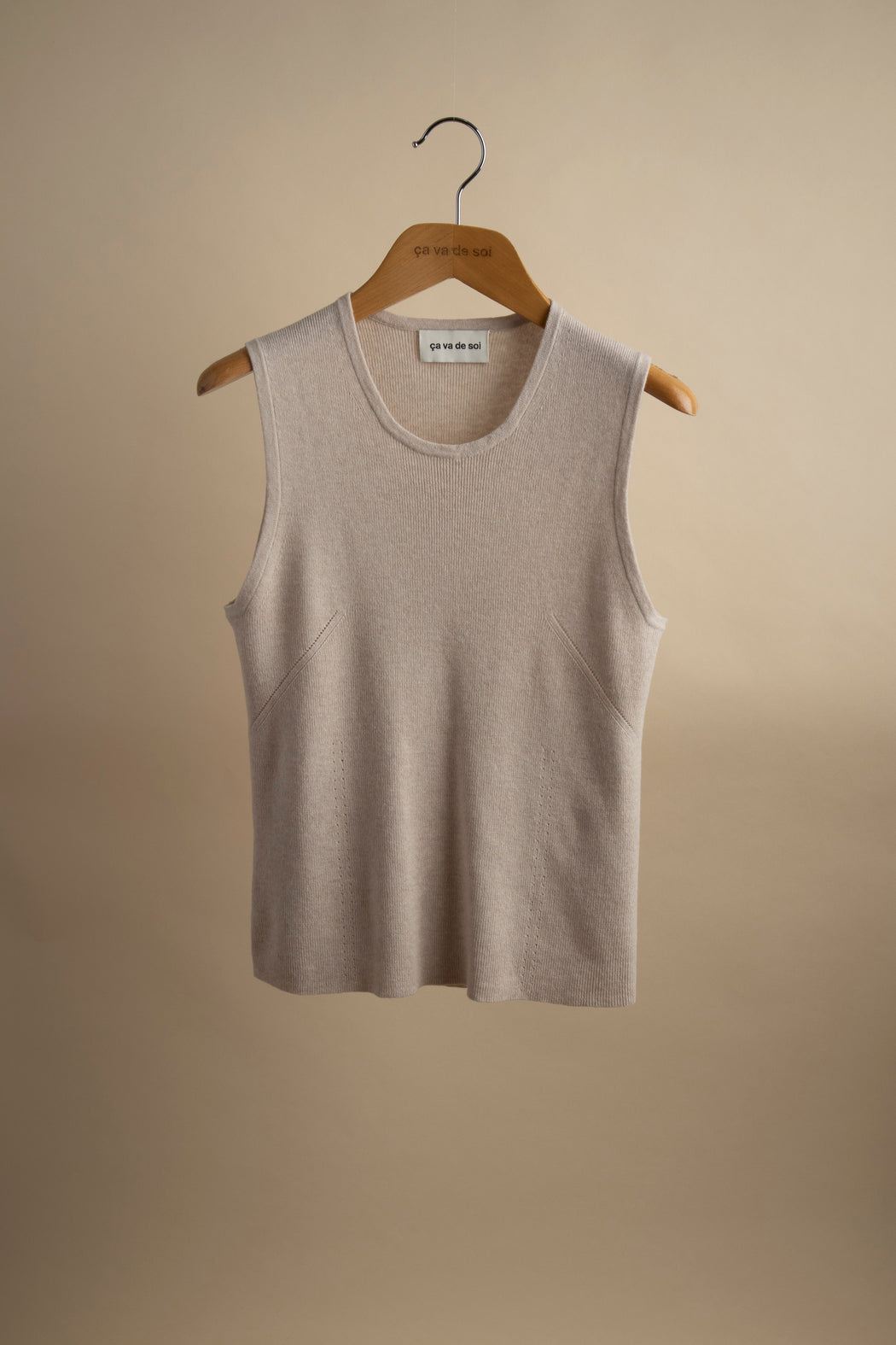 Ultra-sophisticated and refined, Luna is as charming as it is versatile. You’ll notice the many details that set it apart: delicate bust darts in pointelle knit, needle reductions shaping the silhouette, neckline and armholes trimmed with tubular jersey. Knitted in fine ribs for comfort and stretch, its raw-edge hem gives a graceful drape without clinging at the waist. Perfectly paired with the matching V-neck cardigans—CORNELIA or MARGARET.
