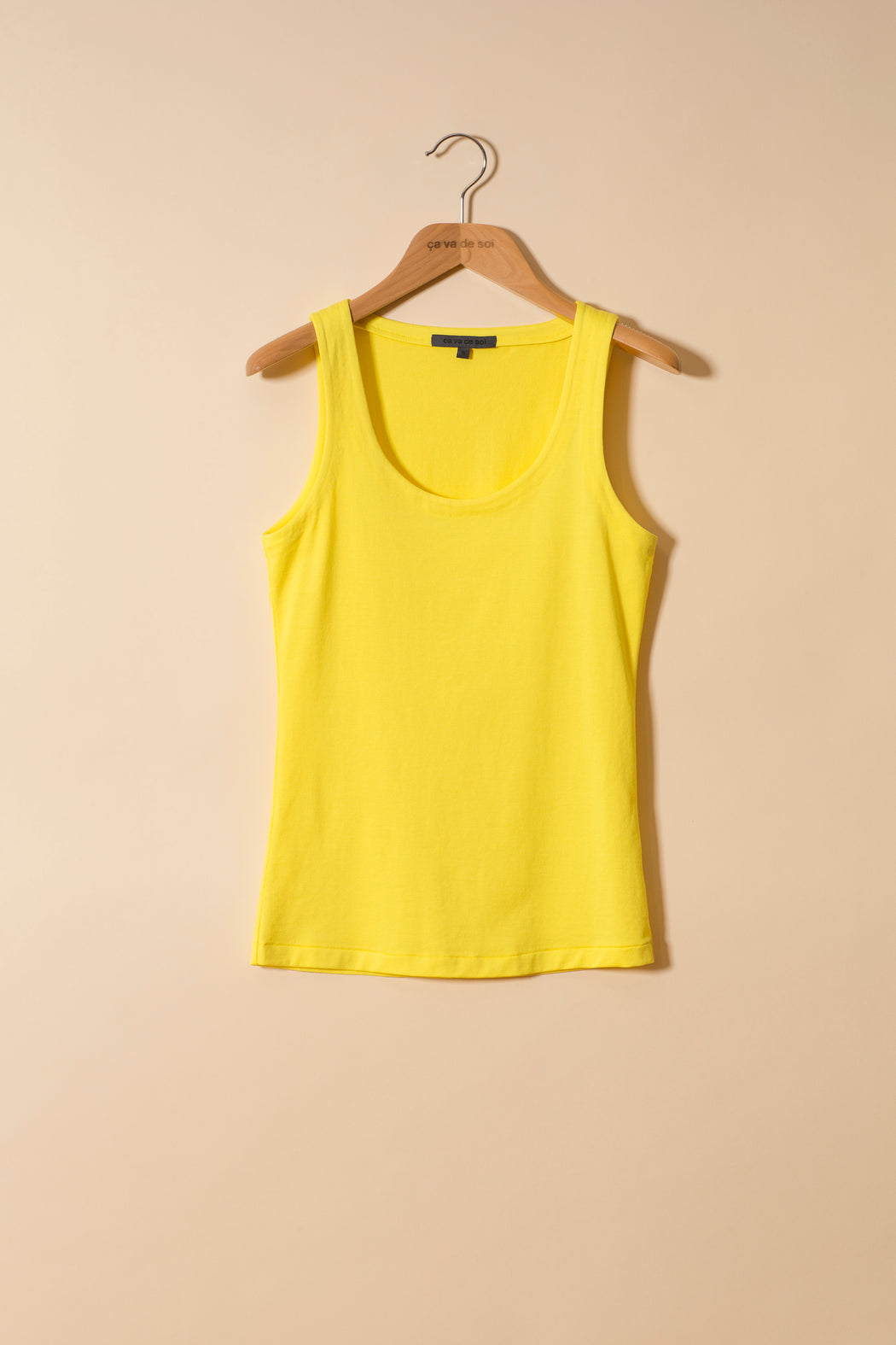 This camisole is made of Egyptian mako cotton COM4-ZÉRO® mixed with 8% Dupont Lycra®. It hugs the body like a second skin, with a hint of stretch that gives the yarn support you’ll adore. To be worn alone or slipped discreetly beneath a cardigan or other tops.