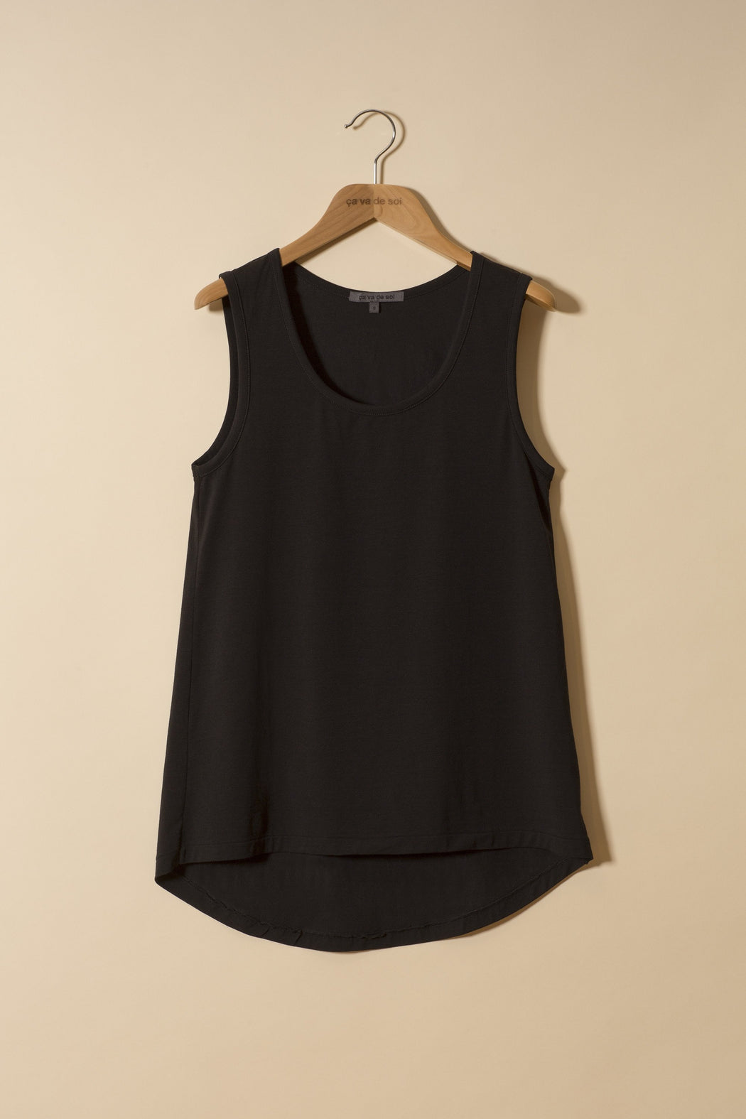 This Egyptian mako cotton COM4-ZÉRO® mixed with 7% Dupont Lycra® hugs the body like a second skin. A hint of stretch gives the knit body and discreet support that you’ll adore. To be worn alone or slipped discreetly beneath a cardigan or other top.