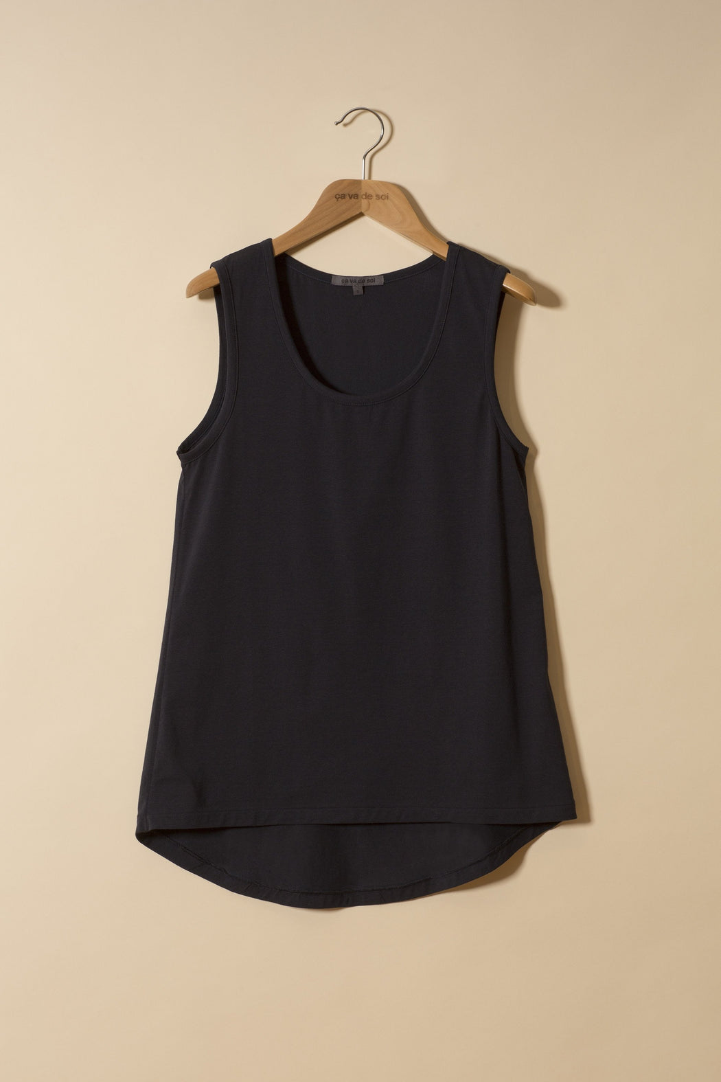 This Egyptian mako cotton COM4-ZÉRO® mixed with 7% Dupont Lycra® hugs the body like a second skin. A hint of stretch gives the knit body and discreet support that you’ll adore. To be worn alone or slipped discreetly beneath a cardigan or other top.