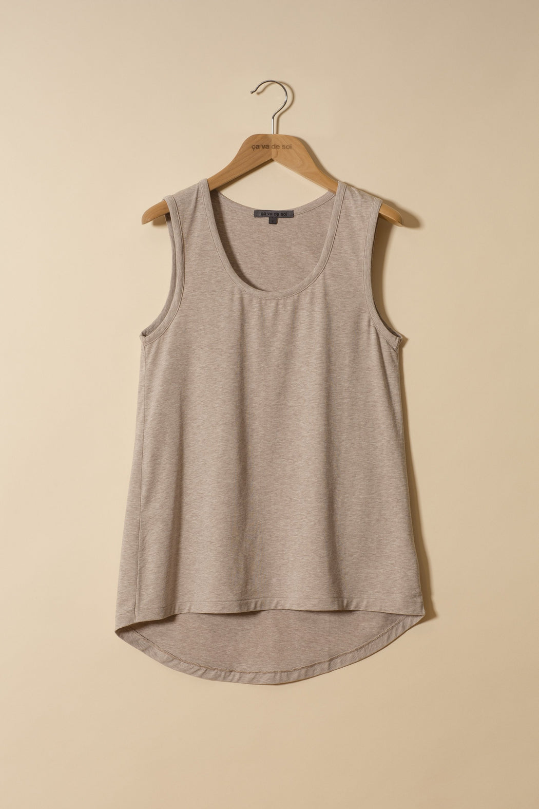 This Egyptian mako cotton COM4-ZÉRO® mixed with 7% Dupont Lycra® hugs the body like a second skin. A hint of stretch gives the knit body and discreet support that you’ll adore. To be worn alone or slipped discreetly beneath a cardigan or other top.