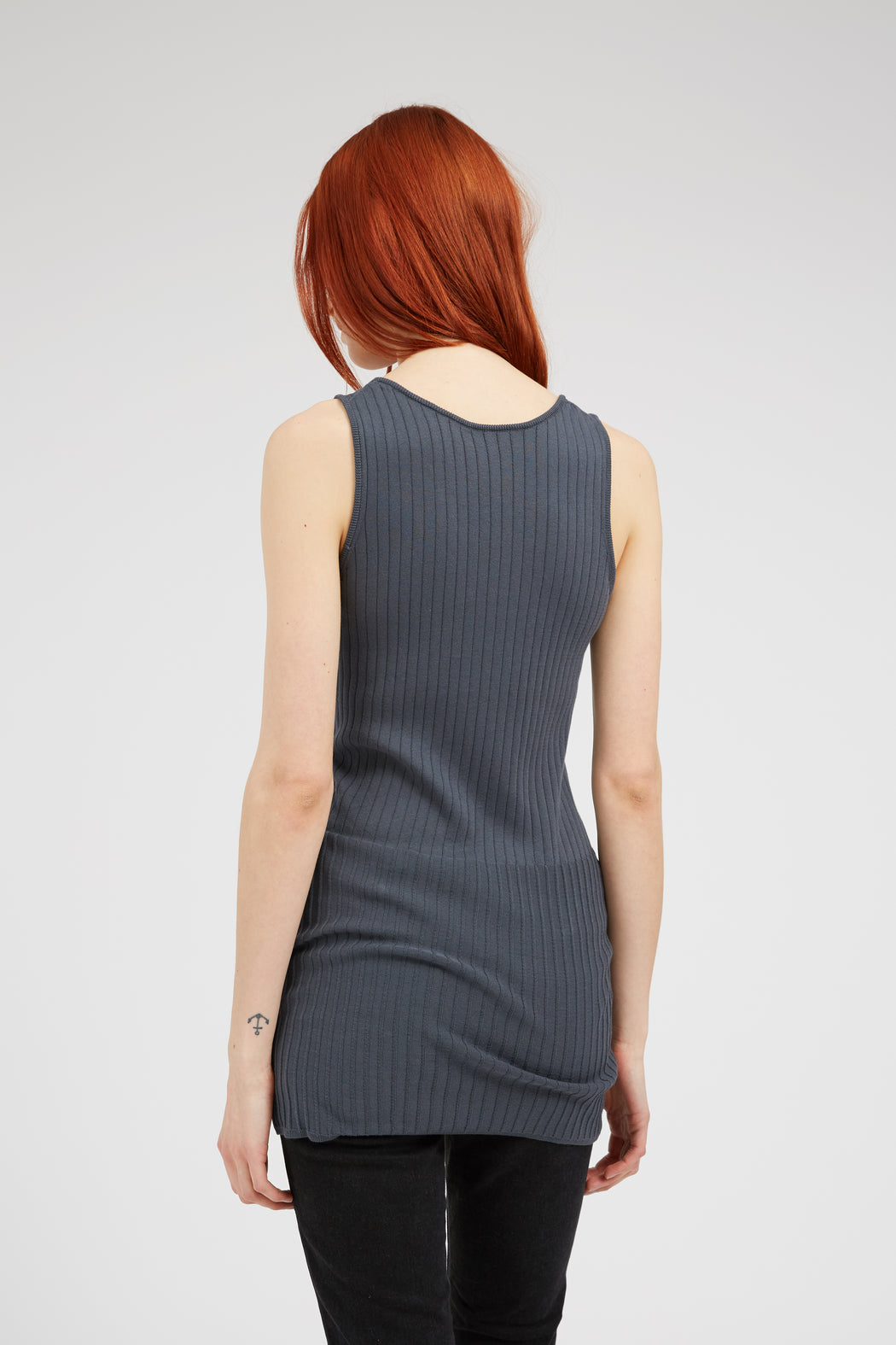 This long knitted tank is made of Egyptian cotton COM4-ZERO™, the fruit of 50 years of research. This Italian thread combines the age-old beauty of Egyptian cottons with a cutting-edge spinning technique that almost entirely eliminates fuzziness, which traditionally causes pilling over time. The thread is twisted as little as possible to maintain the fibre’s natural elasticity, giving more movement to clothing made from it. The smoother finish also makes it better resist the passage of time. And the increased stability preserves colours indefinitely.