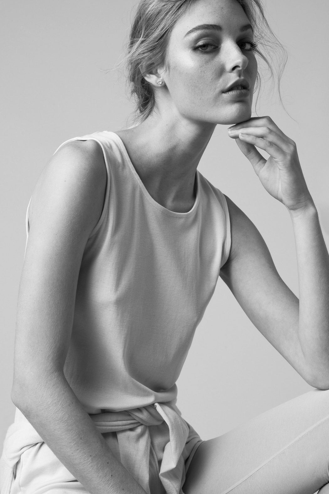 With its flattering trapezoid form and the soft texture of its micro-ribs, this tank in Karnak-Menoufi pure Egyptian cotton offers the versatility of being worn alone or as an under-layer. Proposed by the model Rosa is the comfort of an undergarment combined with the refinement of a confidently urban "couture" approach. Its structure, as understated as it is refined, bears no other technique than the fine French seams that cinch its openings. The collection of this essential comes in three light shades and a black Licorice.