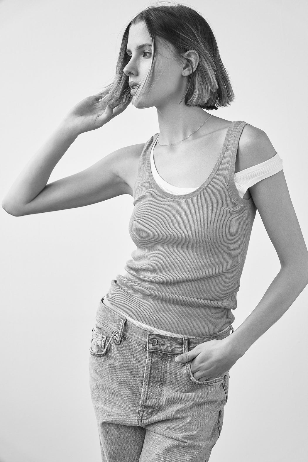 Borrowed from the world of lingerie, it can be worn solo or as a twin set under your favorite cardigan.