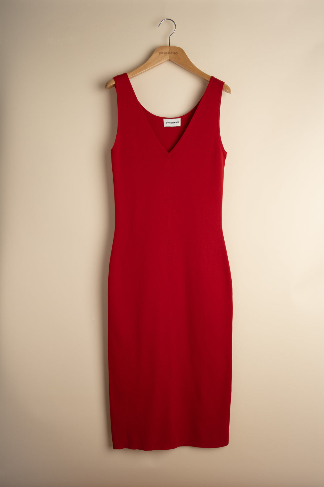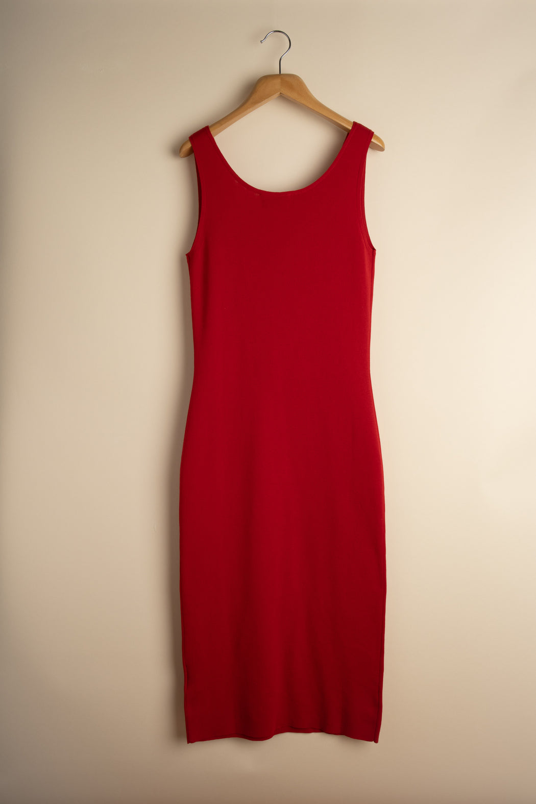 This sleeveless V-neck longuette dress is as chic and glamorous as it is comfortable.
