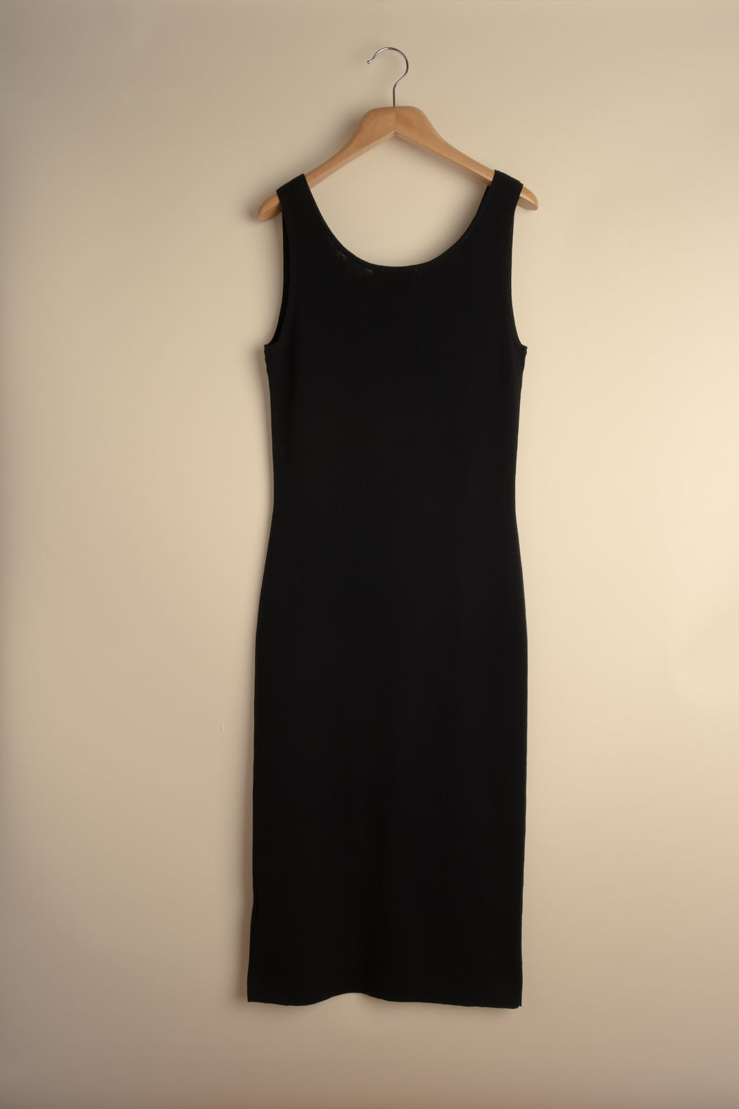 This sleeveless V-neck longuette dress is as chic and glamorous as it is comfortable.