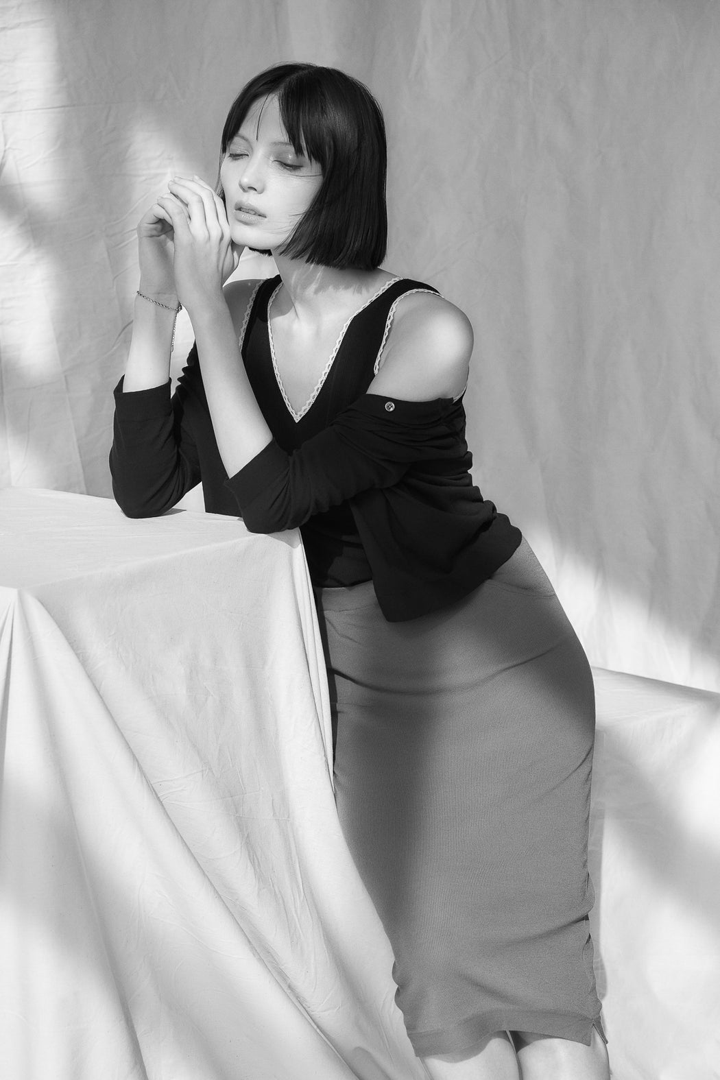 Knitted in summer Artic™ cotton, this high-twist yarn of 4 ultra-fine strands combines the elegance of Egyptian cottons with spinning technology that provides a refreshing feel during the hottest and most humid days and evenings of summer. The high twist used in the production of Artic™ allows the knit to maintain its shape and impeccable appearance, even after long periods of use. This property prevents the formation of unsightly creases, ensuring a graceful and elegant drape while preserving its lightness and flexibility.