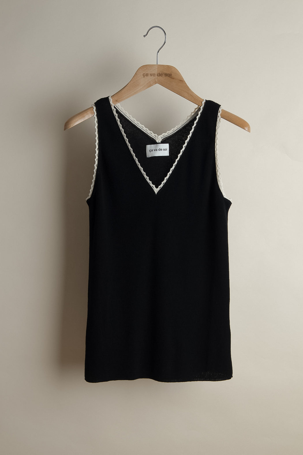 The V-neck ribbed tank with crochet lace detail