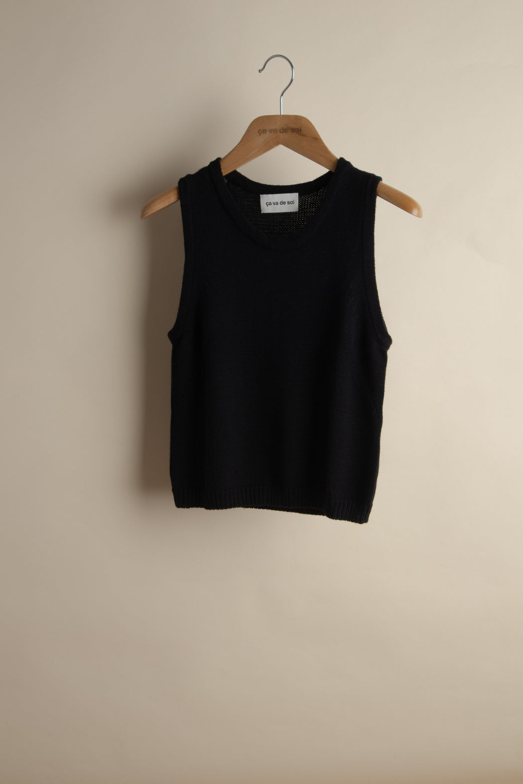 The sleeveless style is making a big comeback, and ça va de soi offer you its soft version with body and hold. Its heavier gauge doesn't take away from its lightness. The play of needle reductions, and shortened silhouette mark the unique charm of this classic piece of the feminine wardrobe, with all modernity. Wear it on its own or as a twin-set with the LEBOU cardigan.
