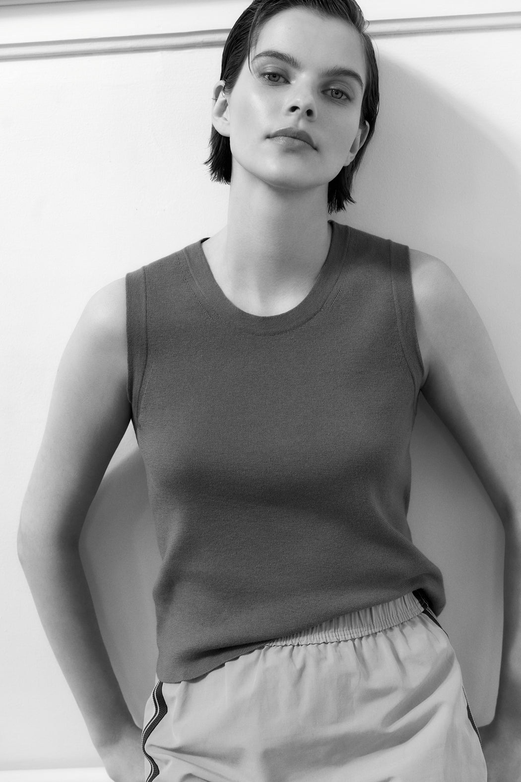 A true summer staple, Orsay is all about simplicity done right. Its clean, carefully tailored cut features wide tubular-knitted trim at the neckline and armholes, reminiscent of a 60s style.