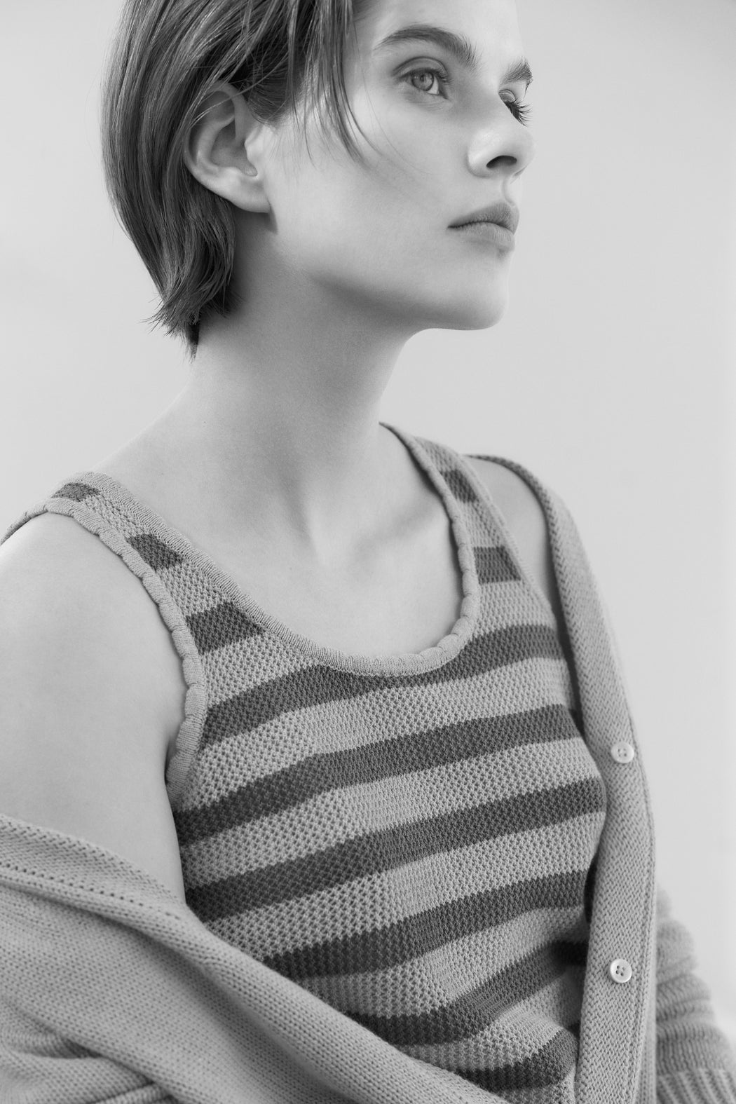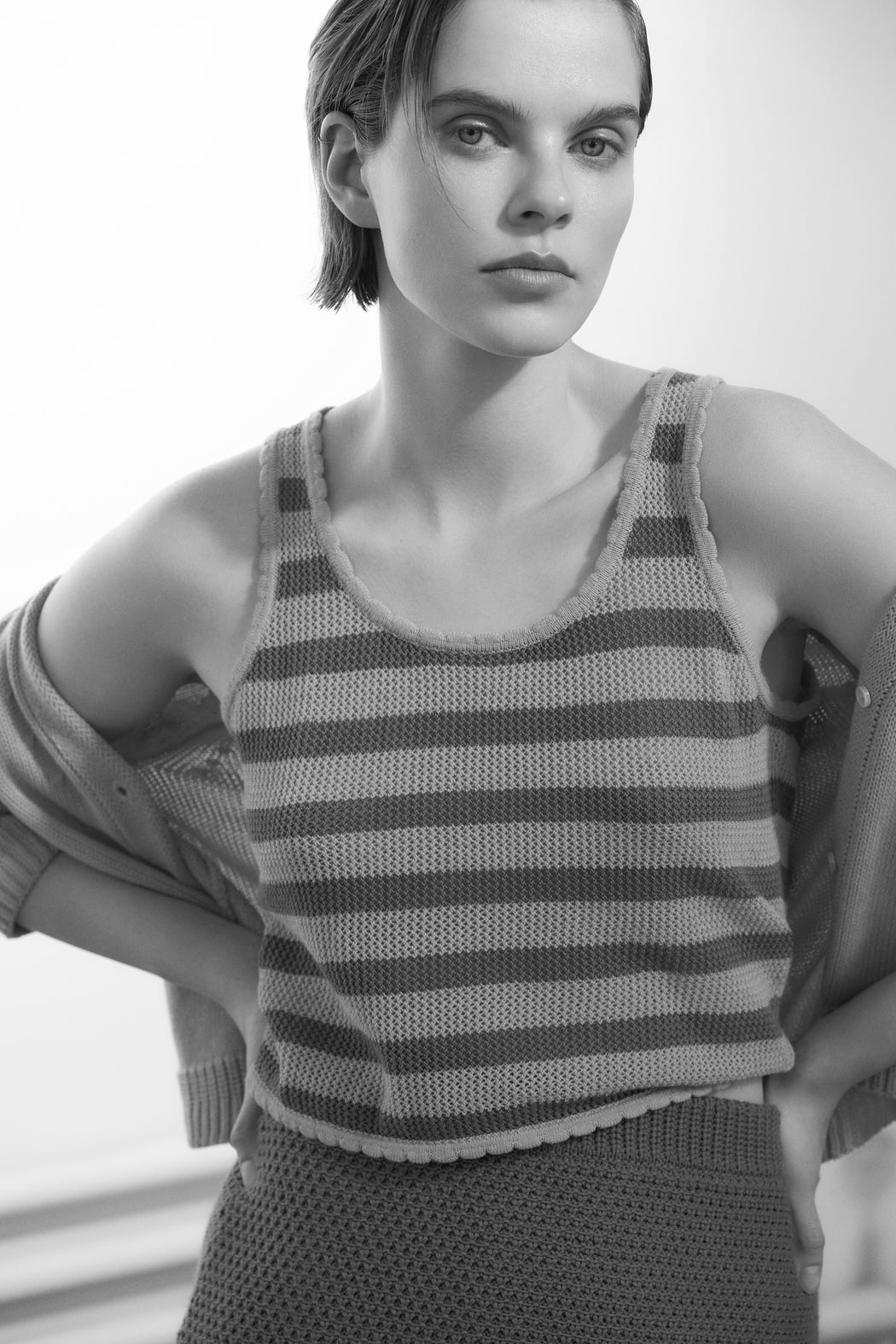 This knit in the style of crochet by hand, as well as its scalloped edges shall bring an artisanal and nostalgic touch to your Spring-Summer outfits, all in fresh solid colors; while the stripes recall the sailor top of the Riviera. It is equally charming paired with a denim short for a summer stroll as it is paired with a bermuda short or high rise trousers for a chic look in the city. Whether solid or marinière-style striped, the most choice for the most style!