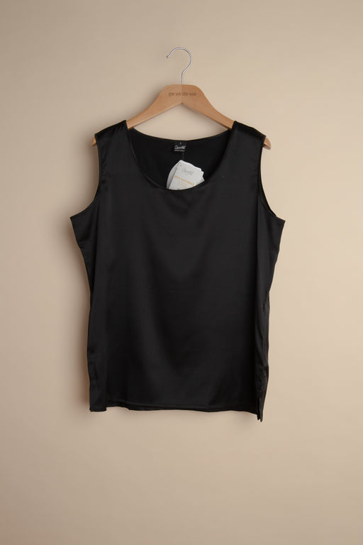 Neither the stitched jersey camisole nor the cami with fine straps, the sleeveless top was initially designed to to work with a cardigan, but wearing alone gave it a lingerie feel. ça va de soi takes the garment to new heights, new possibilities, crafting it with a rounded neckline, a V-neck, a high collar, even turtle-neck, in an ultra-short or classic version. In its cold weather version, it takes the form of a smart vest or perfect tank top.