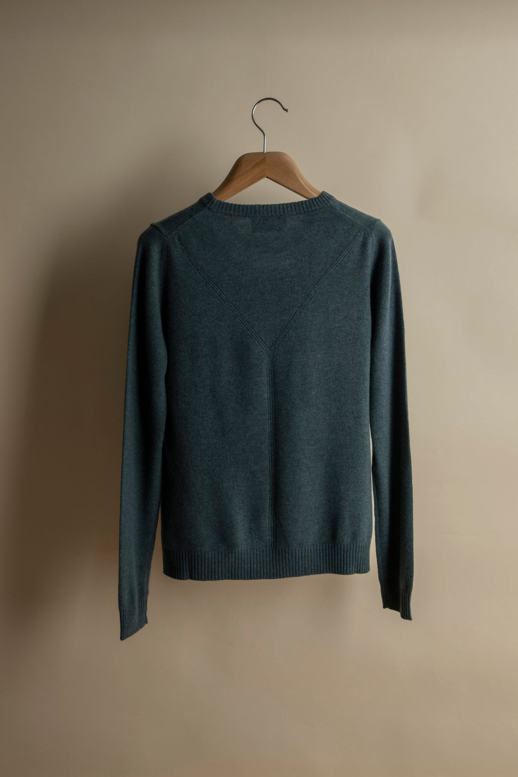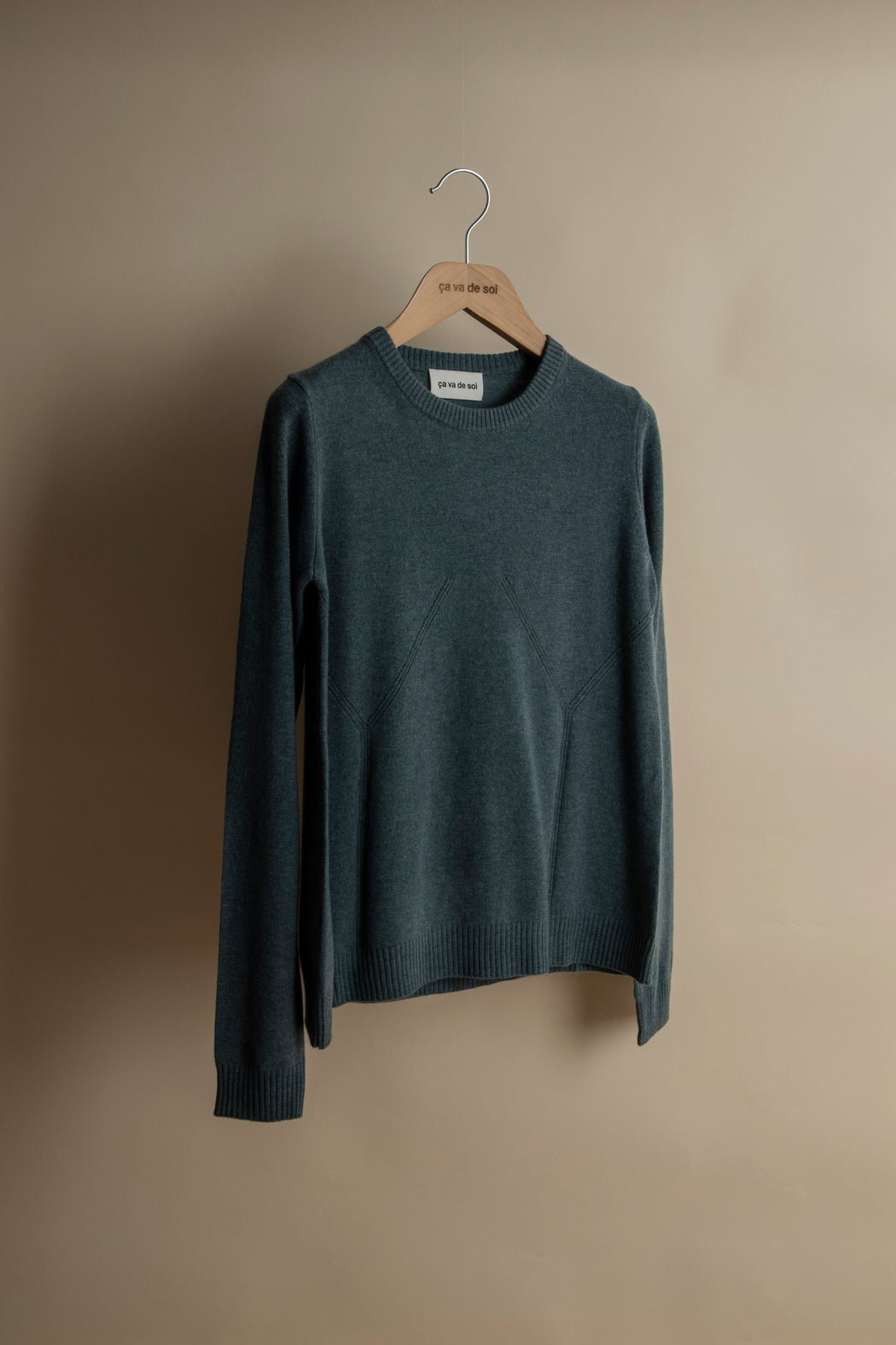 Knitted in carded merino wool, spun expressly in Italy for ça va de soi, whose extrafine (15.5-micron) and ultra-long fibre (a guarantee of longevity and beauty) gives the impression of wearing a cozy cloud — an emotional and intelligent material that understands one’s body language.