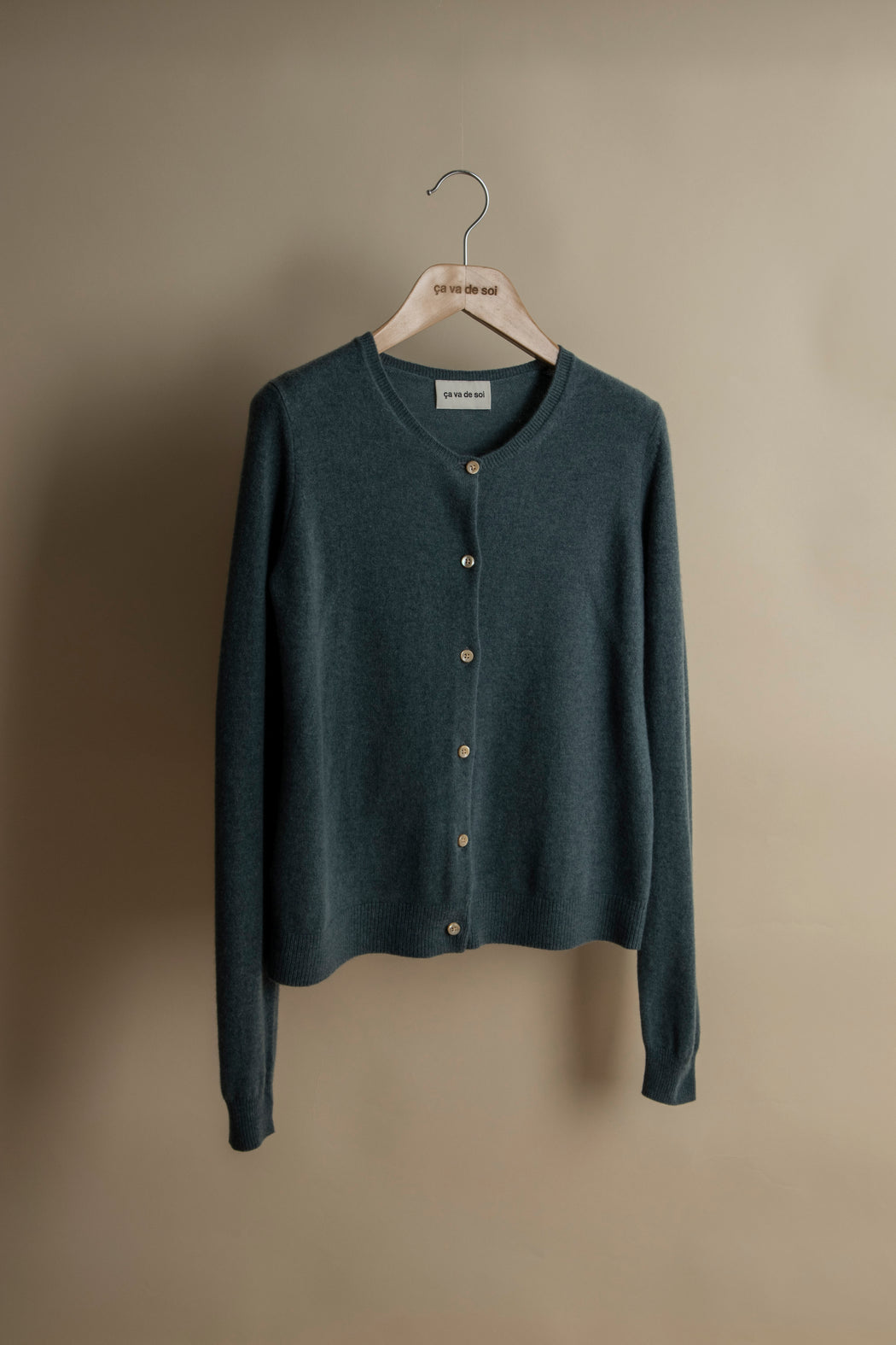 Knitted in carded merino wool, spun expressly in Italy for ça va de soi, whose extrafine (15.5-micron) and ultra-long fibre (a guarantee of longevity and beauty) gives the impression of wearing a cozy cloud — an emotional and intelligent material that understands one’s body language.