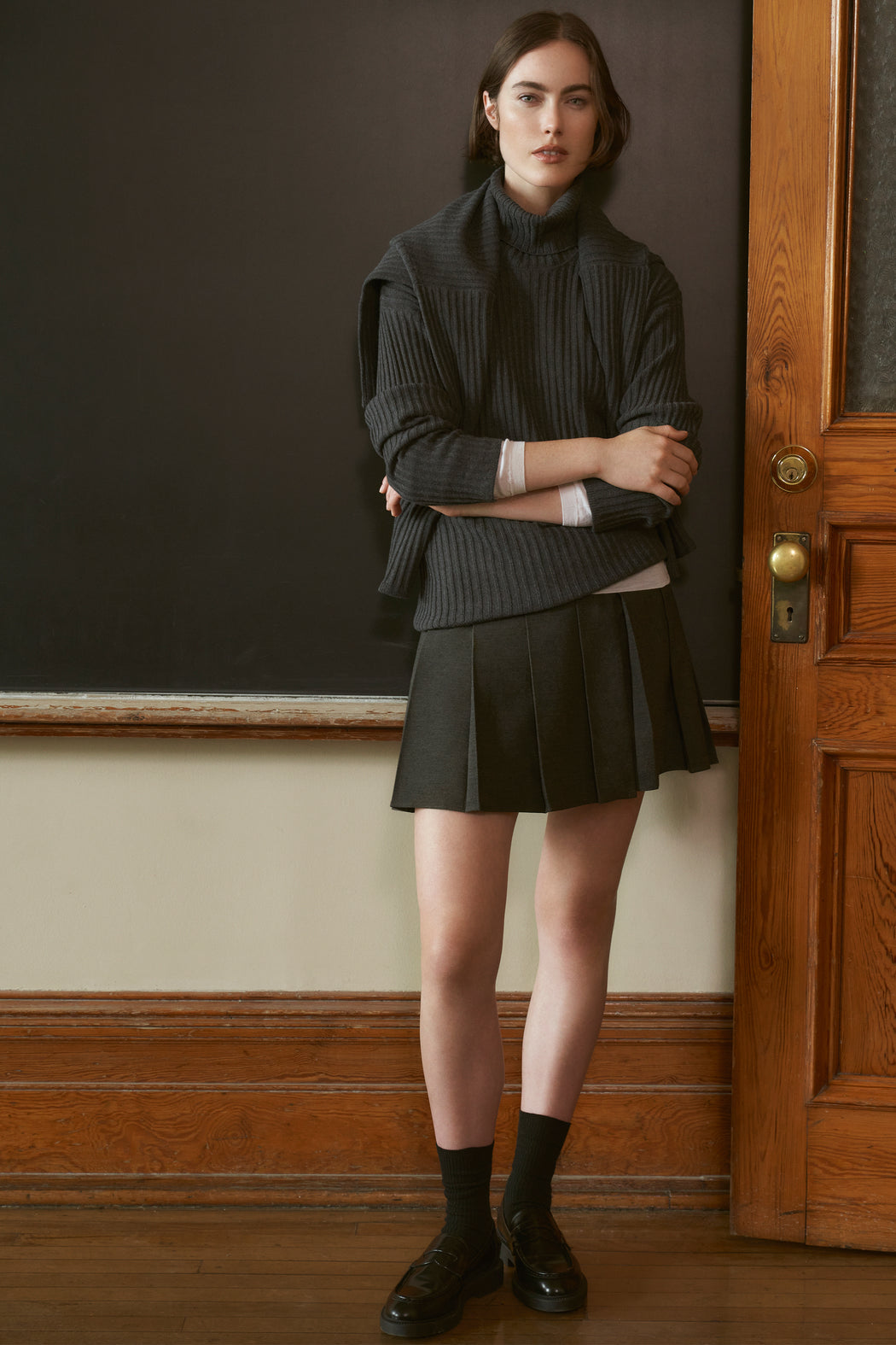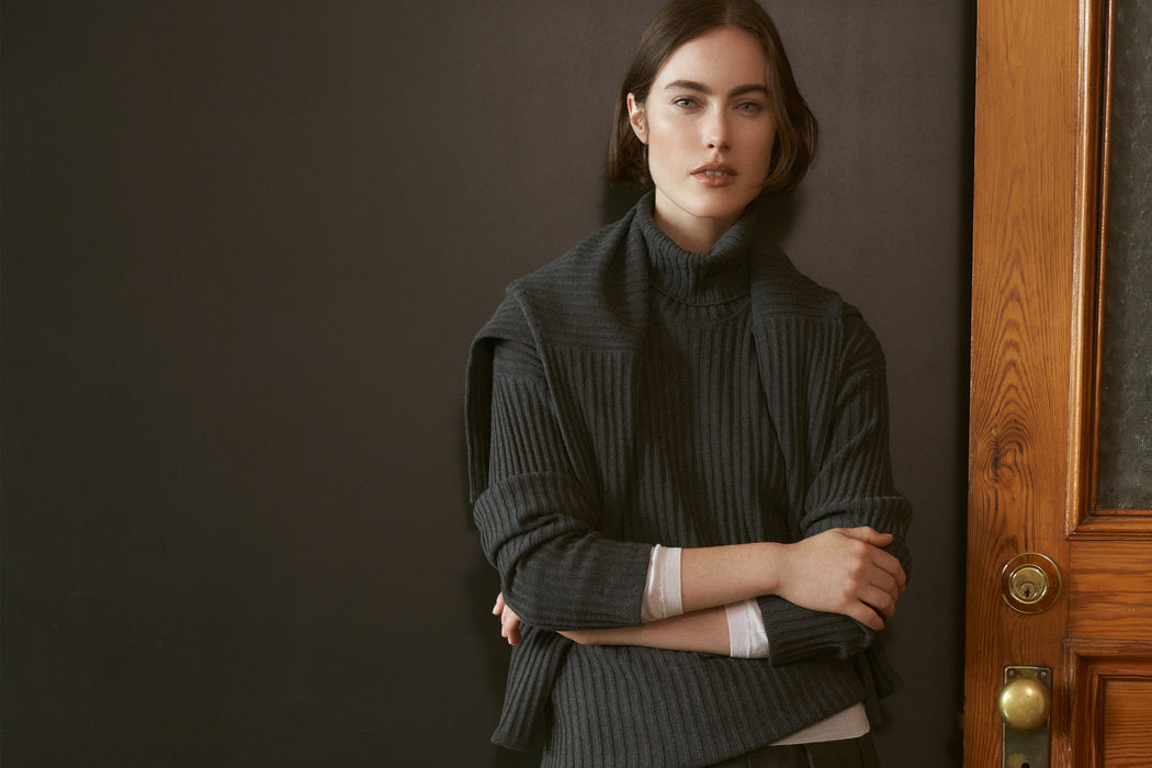 Knitted in carded merino wool, spun expressly in Italy for ça va de soi, whose extrafine (15.5-micron) and ultra-long fibre (a guarantee of longevity and beauty) gives the impression of wearing a cozy cloud — an emotional and intelligent material that understands one’s body language.