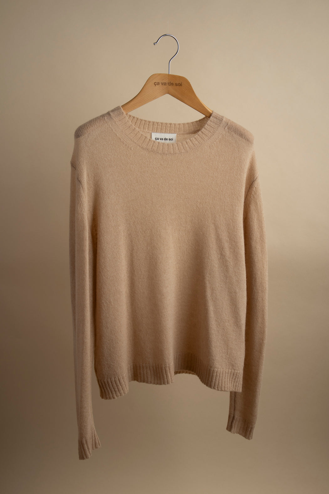 Light as air, warm as a gentle embrace — its 7-gauge knit offers a perfect balance of softness and warmth, like slipping into a quiet cloud on a winter’s day. With its relaxed silhouette, classic crew neckline, and elegance, this sweater will age with grace, a timeless companion through seasons to come.