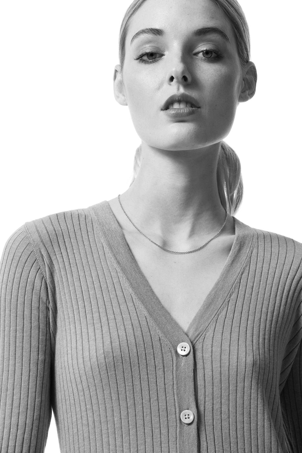 This cardigan is made of Egyptian cotton COM4-ZERO™, the fruit of 50 years of research. This Italian thread combines the age-old beauty of Egyptian cottons with a cutting-edge spinning technique that almost entirely eliminates fuzziness, which traditionally causes pilling over time. The thread is twisted as little as possible to maintain the fibre’s natural elasticity, giving more movement to clothing made from it. The smoother finish also makes it better resist the passage of time. And the increased stability preserves colours indefinitely.