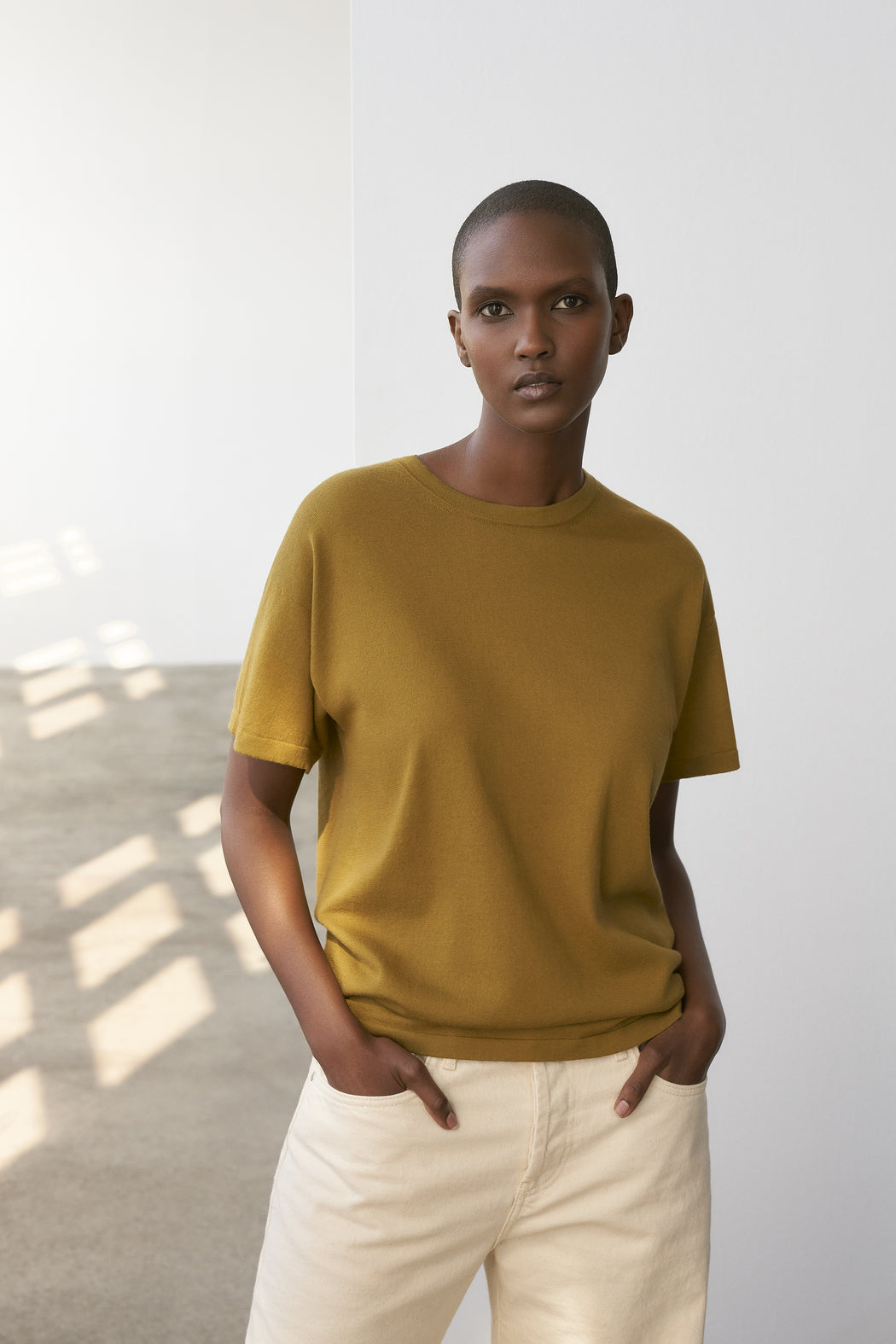 It's made of COM4-ZERO™ Egyptian cotton, an Italian yarn that combines the age-old beauty of Egyptian cottons with state-of-the-art spinning technology, virtually eliminating the fuzz in the yarn that might create pilling over time. Slightly twisted, this yarn advantageously retains the natural elasticity of the fibre, which gives more movement to the garments it generates. Smoother, it gains in solidity to better resist time. More stable, it retains its colors indefinitely.