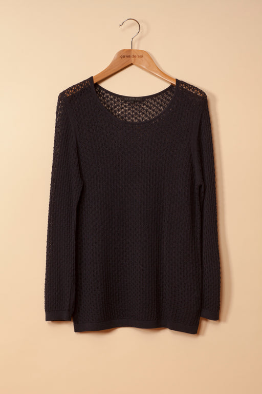 Even our oversize, enveloping sweaters are made off fibres that we double or triple to help you survive the cold in complete comfort. Wools are also distinguished by the technique used to prepare them for spinning, either carding or combing. Our cashmere and virgin wool are carded fibres for more warmth and durability an for a more rustic finish. Our extra-fine merino falls into the category of combed wools which are more refined since they look perfectly even. The style of knit dictates the choice of technique.
