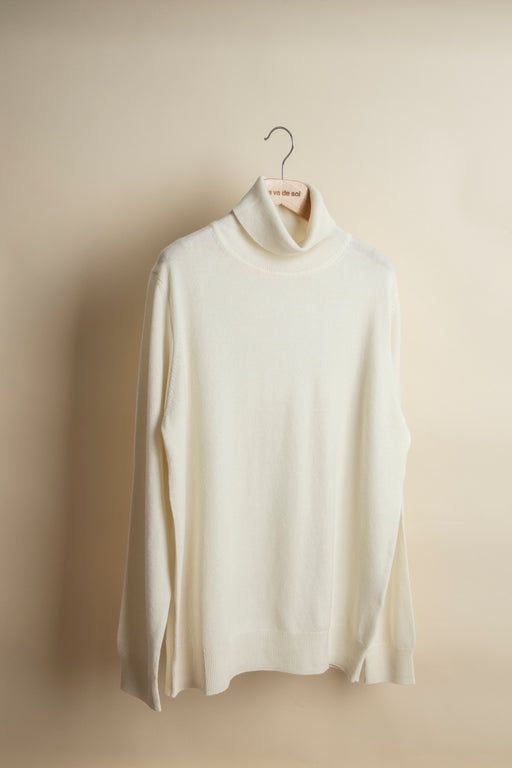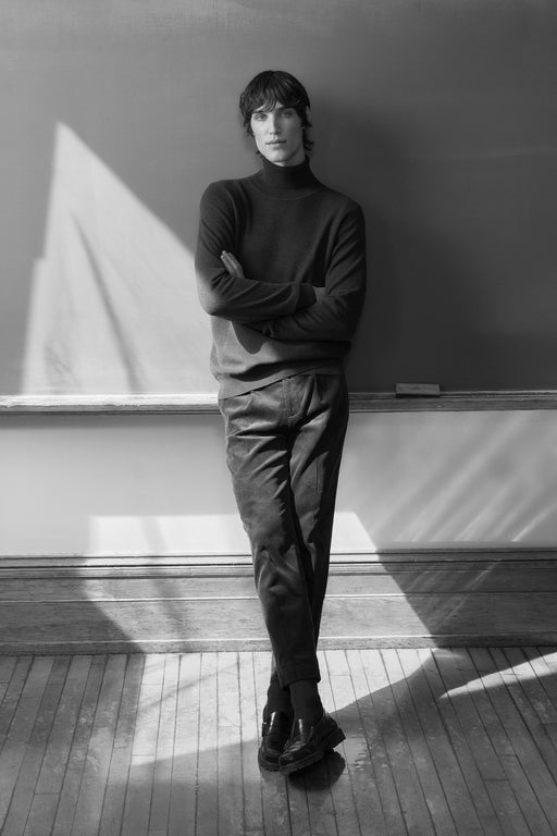 Even our oversize, enveloping sweaters are made off fibres that we double or triple to help you survive the cold in complete comfort. Wools are also distinguished by the technique used to prepare them for spinning, either carding or combing. Our cashmere and virgin wool are carded fibres for more warmth and durability an for a more rustic finish. Our extra-fine merino falls into the category of combed wools which are more refined since they look perfectly even. The style of knit dictates the choice of technique.