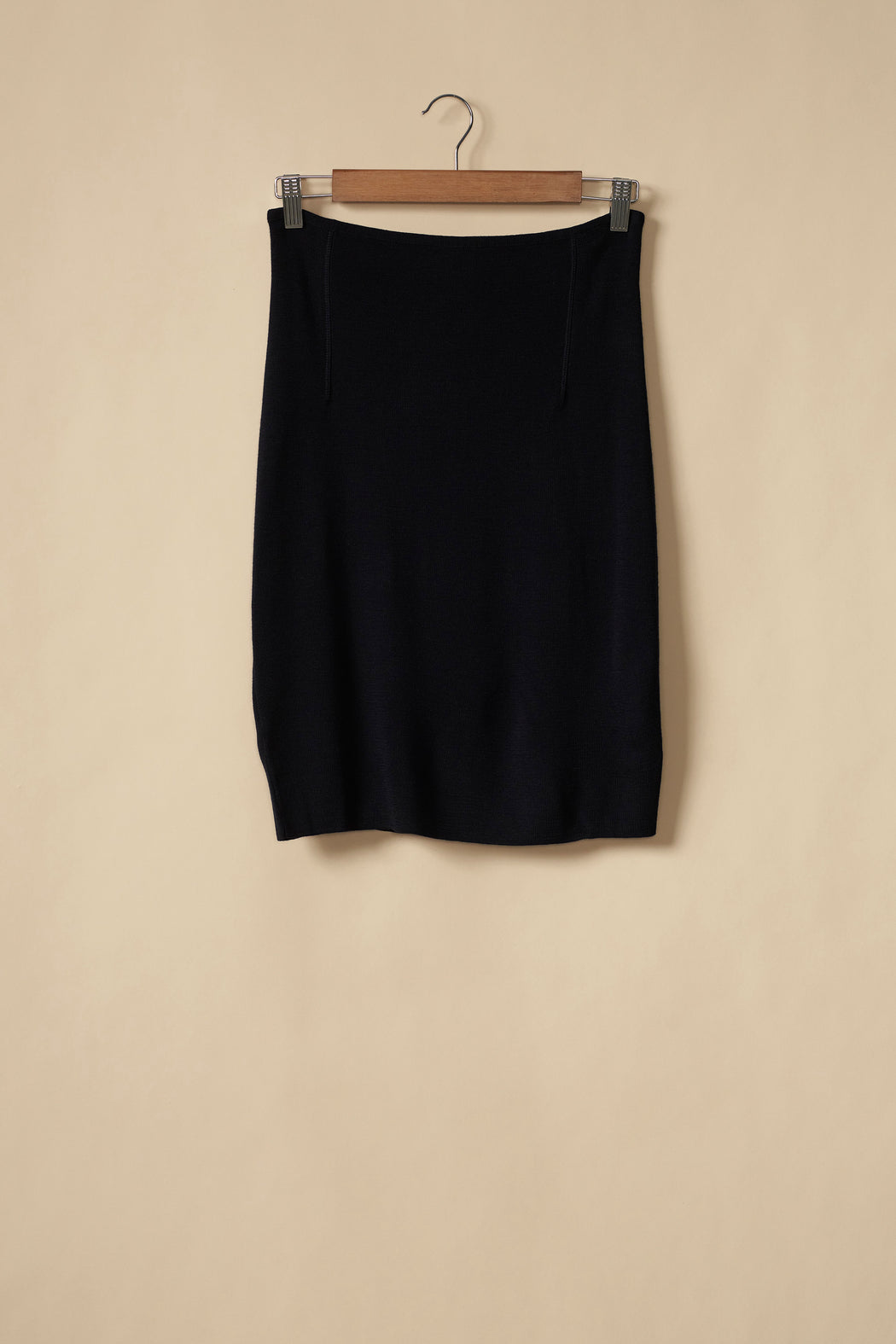 This merino skirt is made from a rare and sought after Australian wool - Super 160 - with ultra-long 15.5 micron staples. This wool displays a perfect aesthetic, ennobled by a finishing technique that is practiced only in Italy. It is worn on the skin in all seasons and for comfort thanks to its thermoregulating properties.