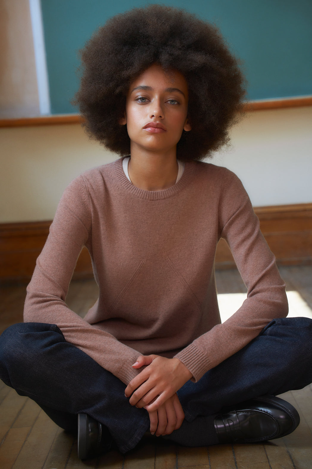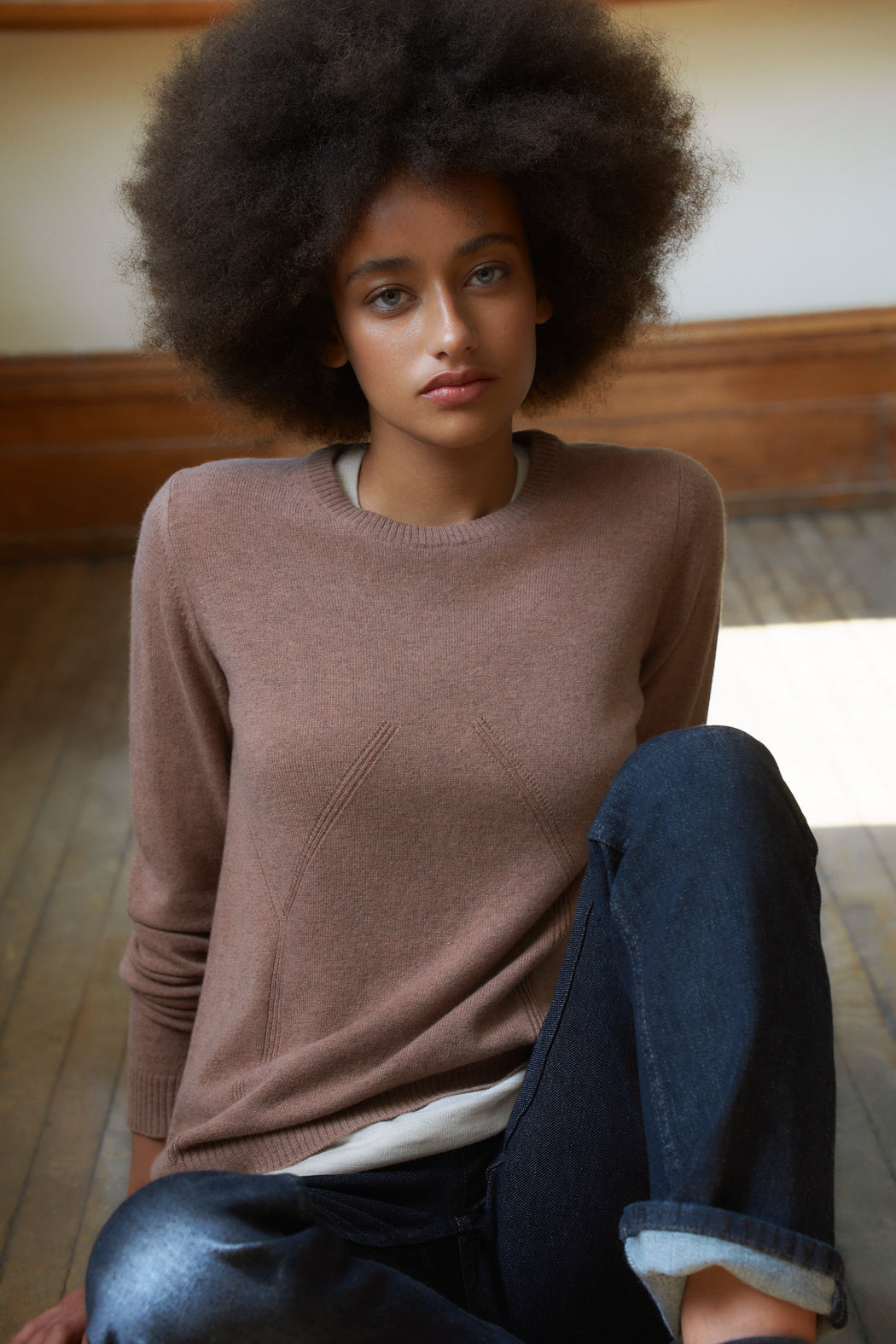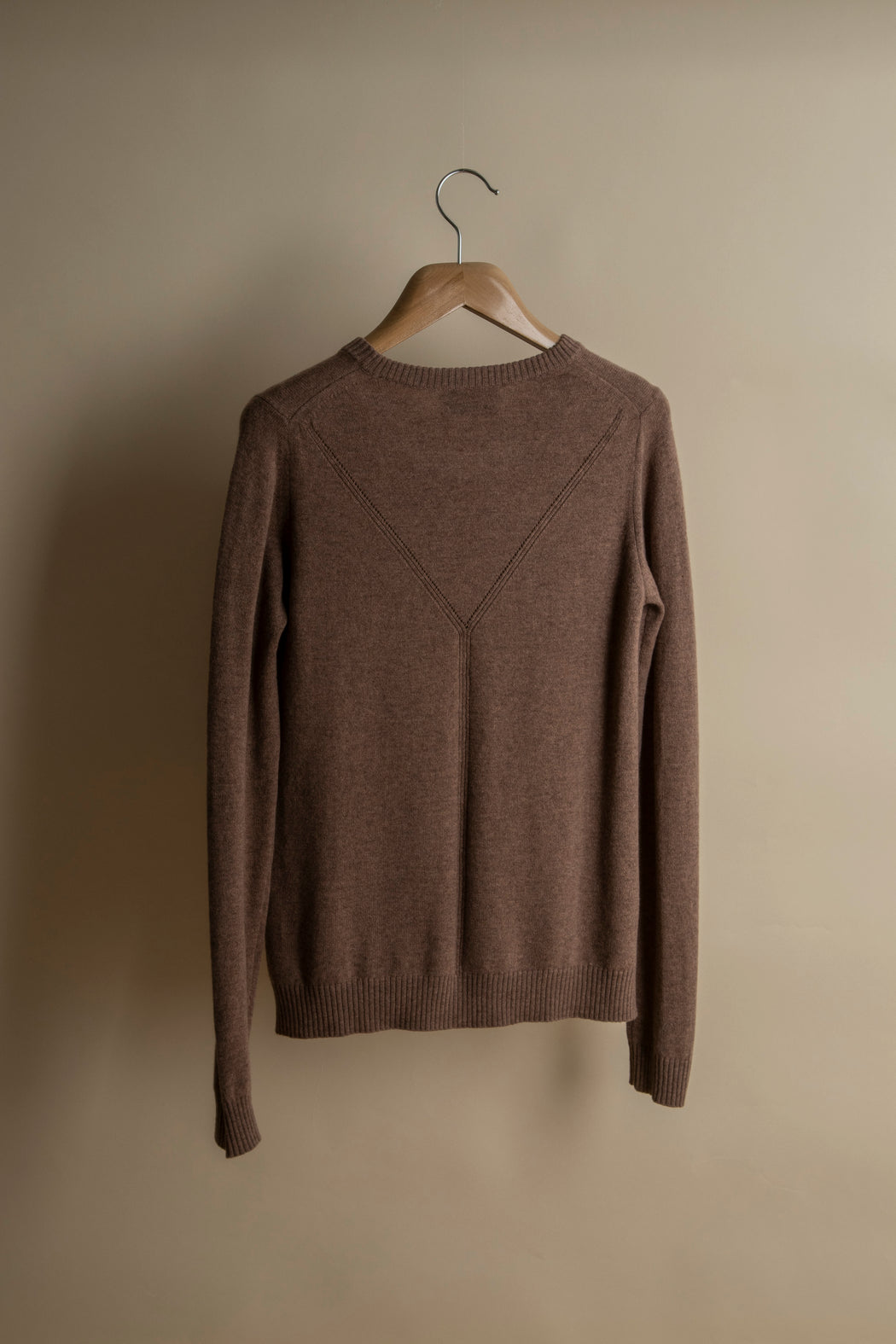 Knitted in carded merino wool, spun expressly in Italy for ça va de soi, whose extrafine (15.5-micron) and ultra-long fibre (a guarantee of longevity and beauty) gives the impression of wearing a cozy cloud — an emotional and intelligent material that understands one’s body language.