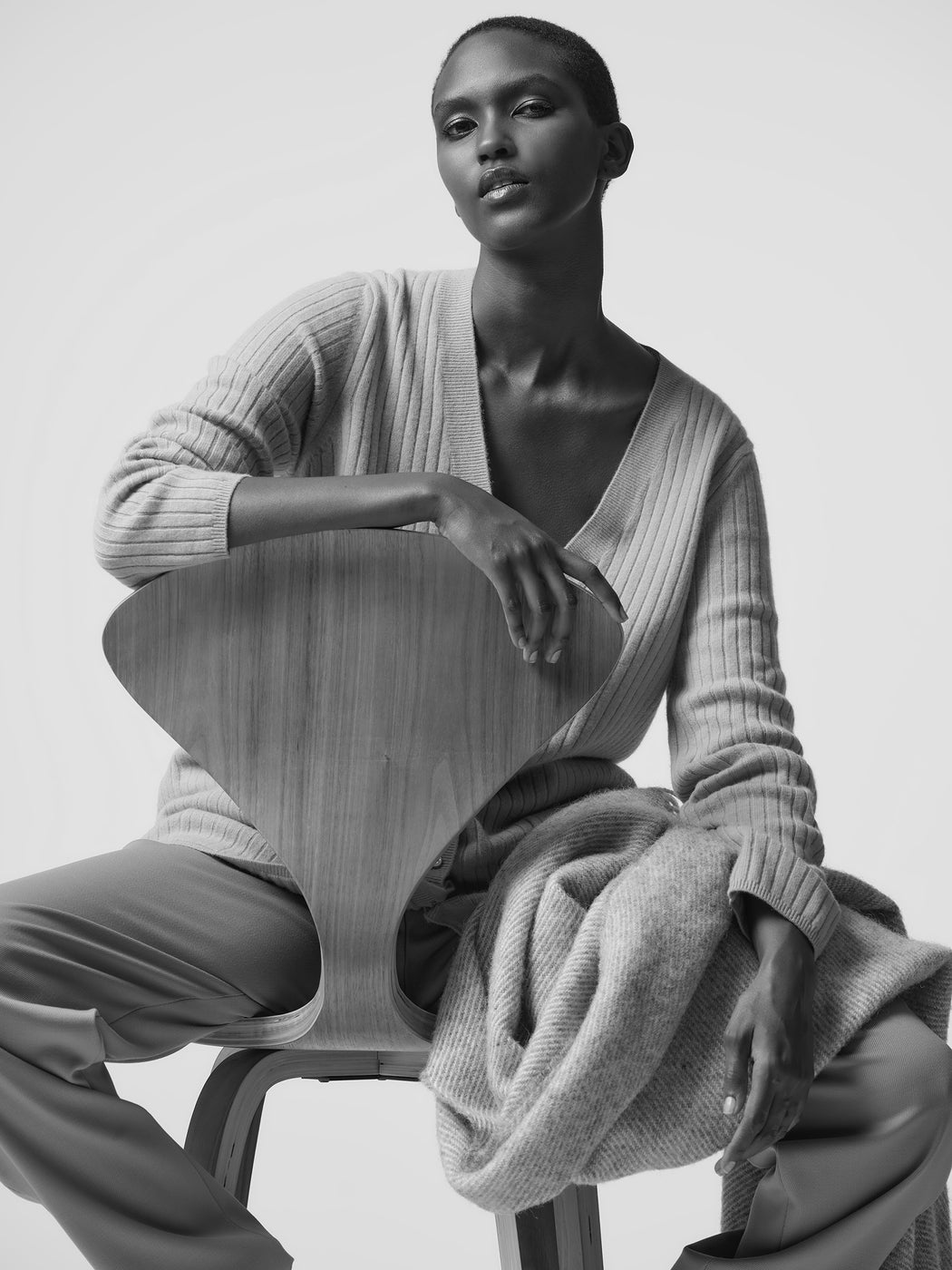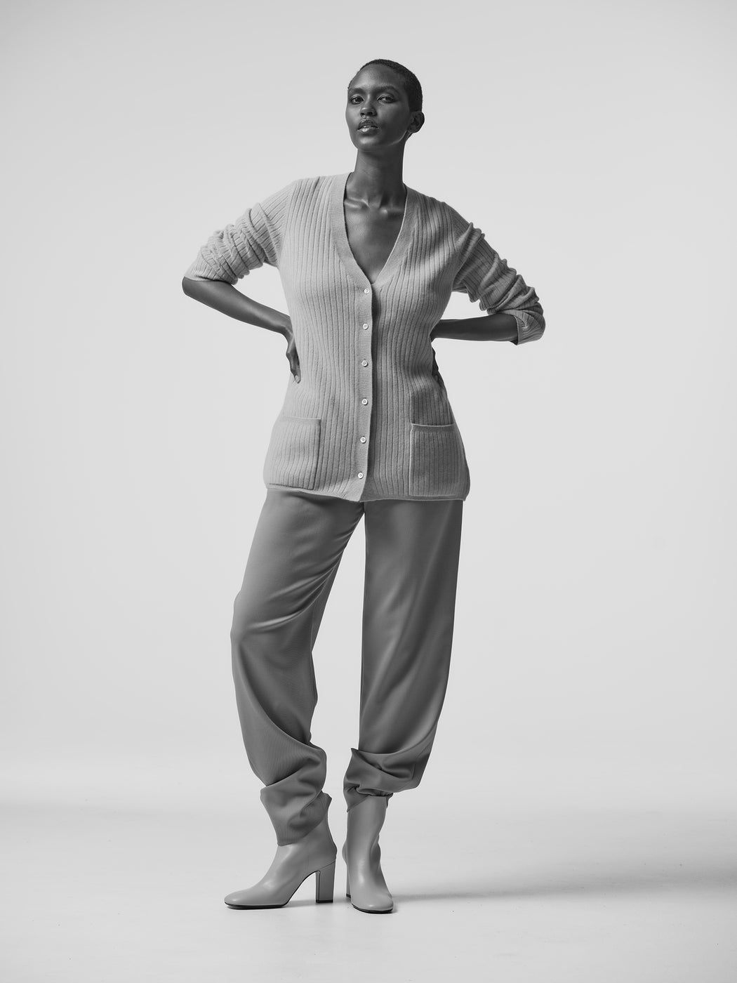 With its V-neckline and ribbed texture, the Gaia cardigan is one of the greatest classics of the house, revisited this year with lower pockets. Particularly light, this transitional piece opens up multiple options.