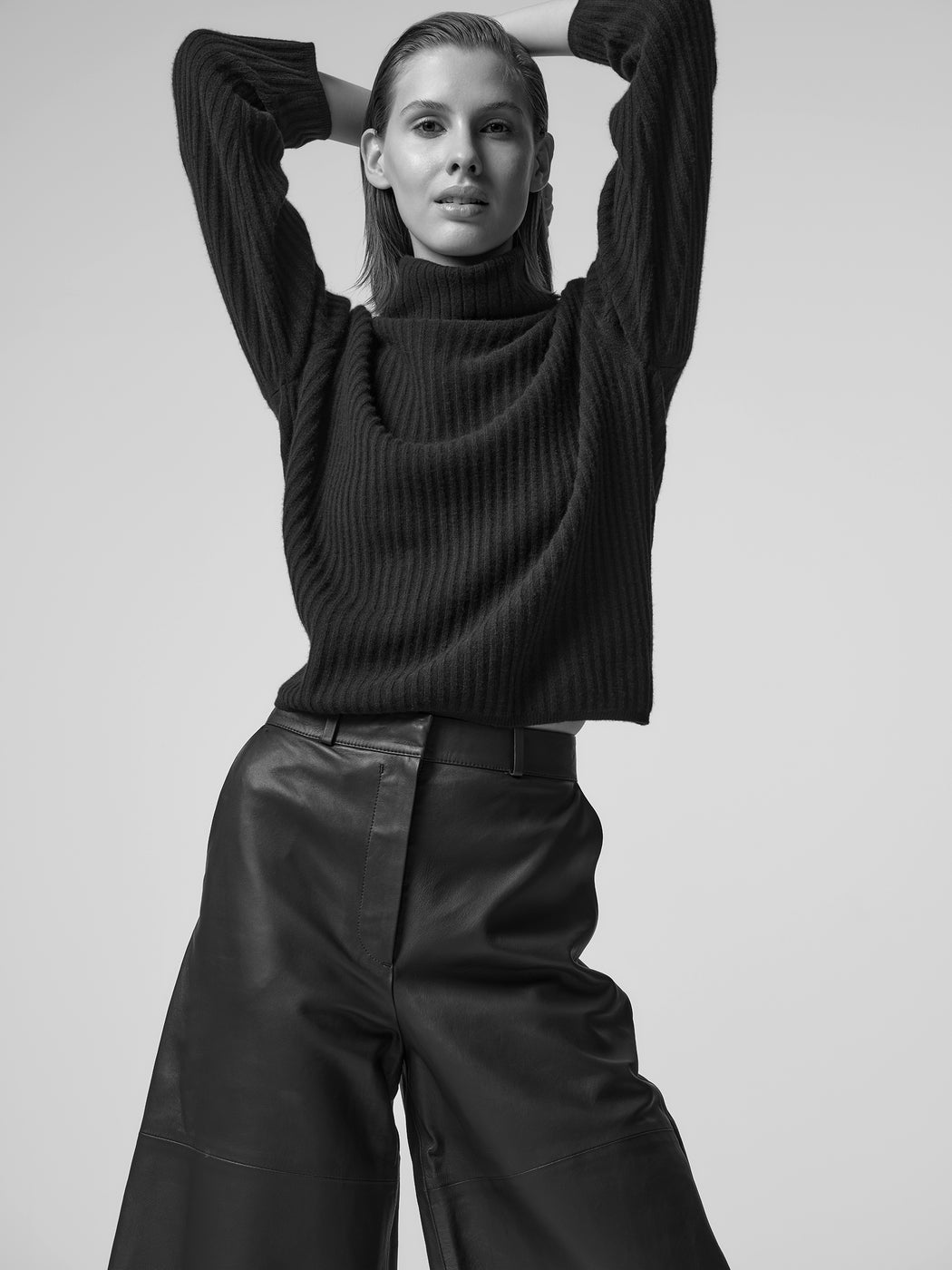 This ribbed drop-shoulder turtleneck is cropped, loose and enveloping while offering style freedom. Sutra shall bring a modern touch to your wardrobe.