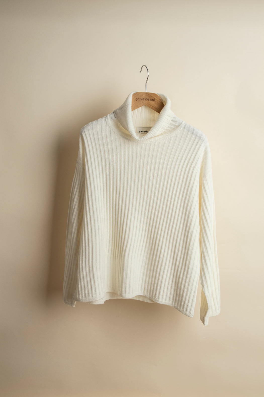 By popular demand, Sutra is back in new colors for this season. This turtleneck, with dropped shoulders and a cropped length, will envelop you in its beautiful fullness, while offering freedom of style. A slightly open collar and bracelet-length sleeves are the assets of this casual sweater. Ideal to wear with the Macao leggings or an above-the-knee skirt. Sutra will bring a modern touch to your wardrobe. Particularly lightweight, this transitional piece opens up multiple options, and its 2x5 reverse flat ribbing brings incomparable softness.