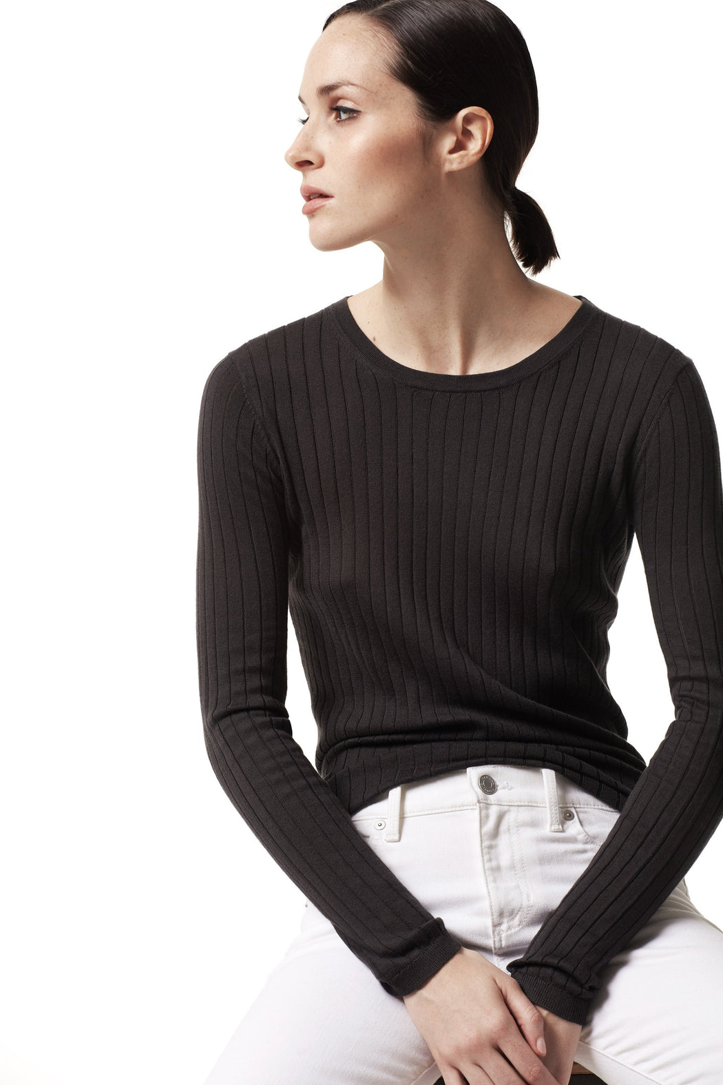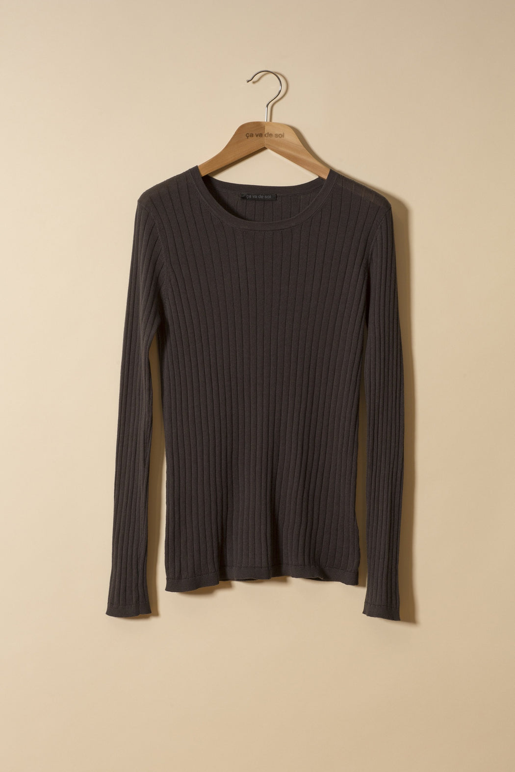 Drop-needle 70s ribbed crewneck sweater