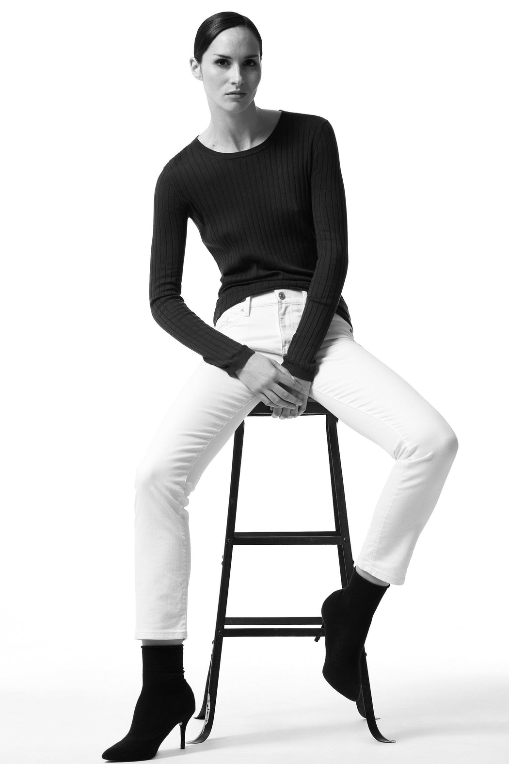 Drop-needle 70s ribbed crewneck sweater